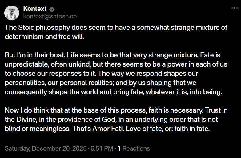 We talk about SATOSH.EE ( #784376 ), the β Bitcoin Wall Calendar ( #1290747 )β , a little bit about β my philosophical book ( #1074789 )β , and the parallels between Bitcoin and Stoicism.