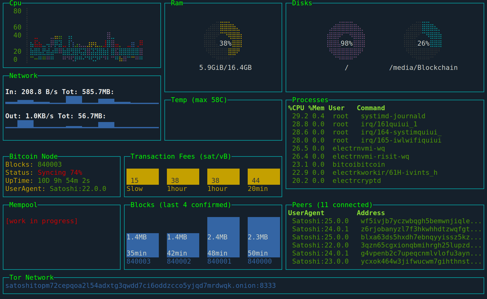 Bitcoin full node monitoring dashboard for terminal in CLI interface