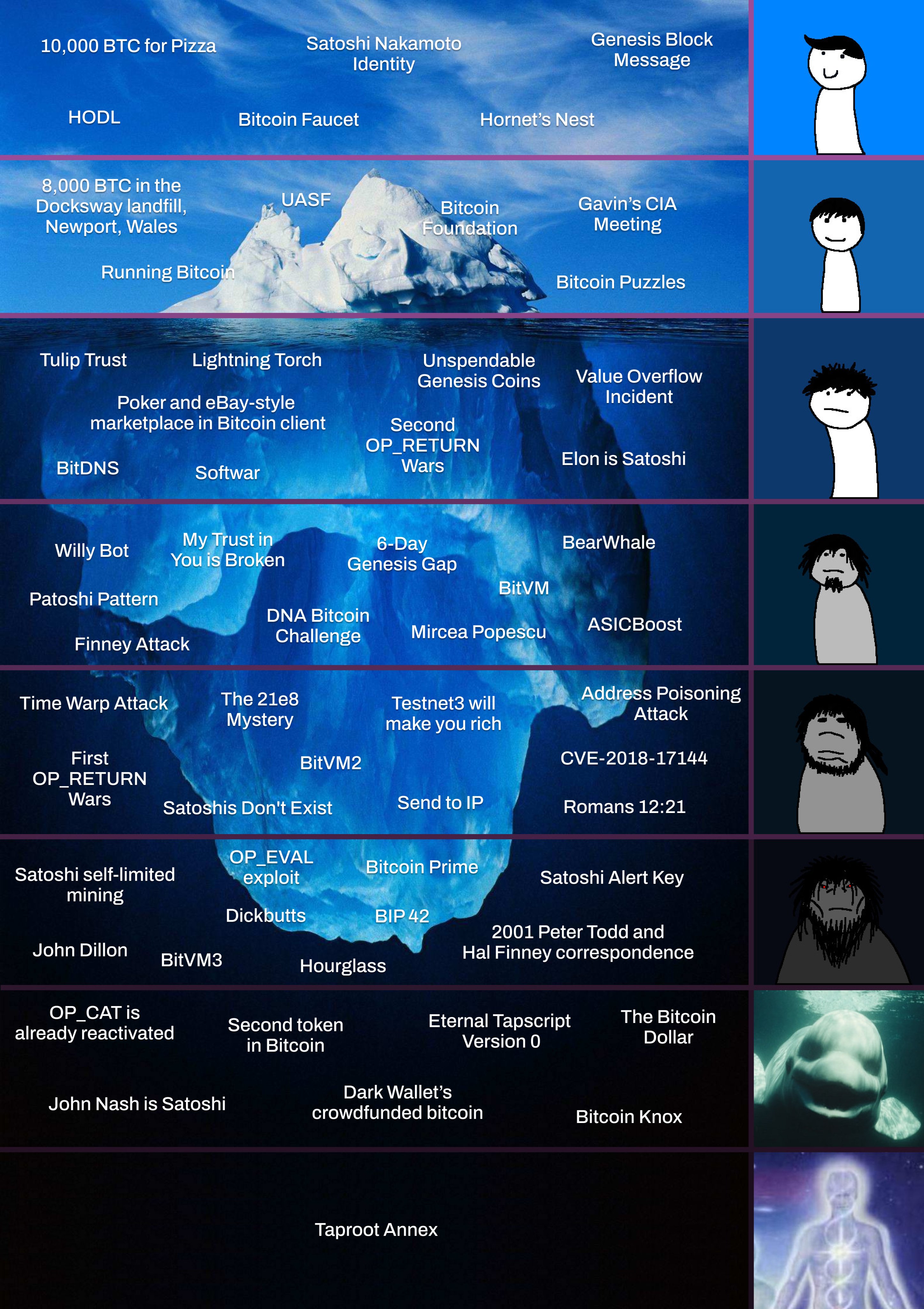 Satoshi Nakamoto being 2 persons should be included here - One of them was the one that made the initial whitepaper, and the other was the coder, who deleted their private keys after being raided by the CIA and commited suicide shortly after. Nick Szabo & Len Sassaman respectively.