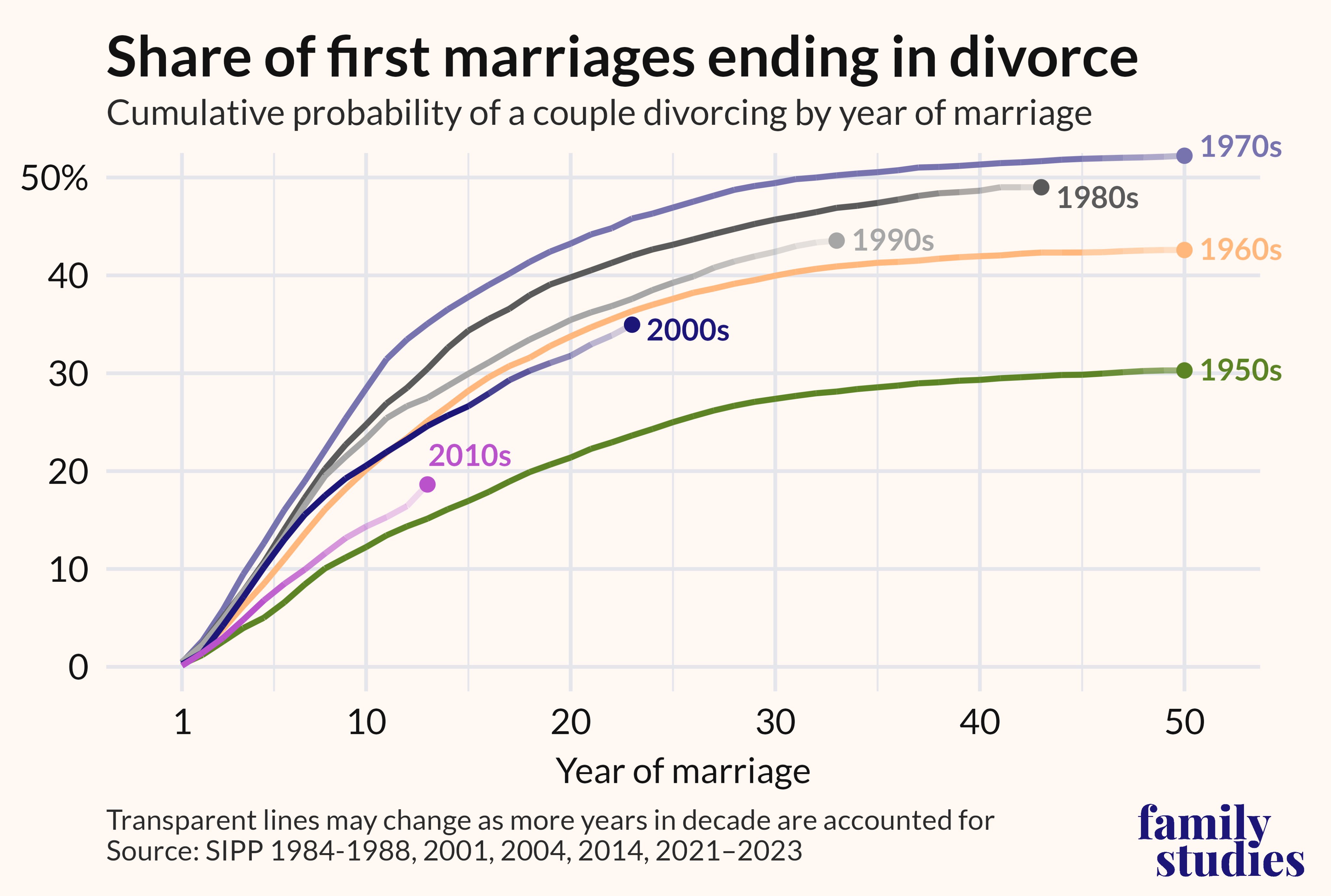 I guess there are less divorces, because today fewer people marry than in the 50s.