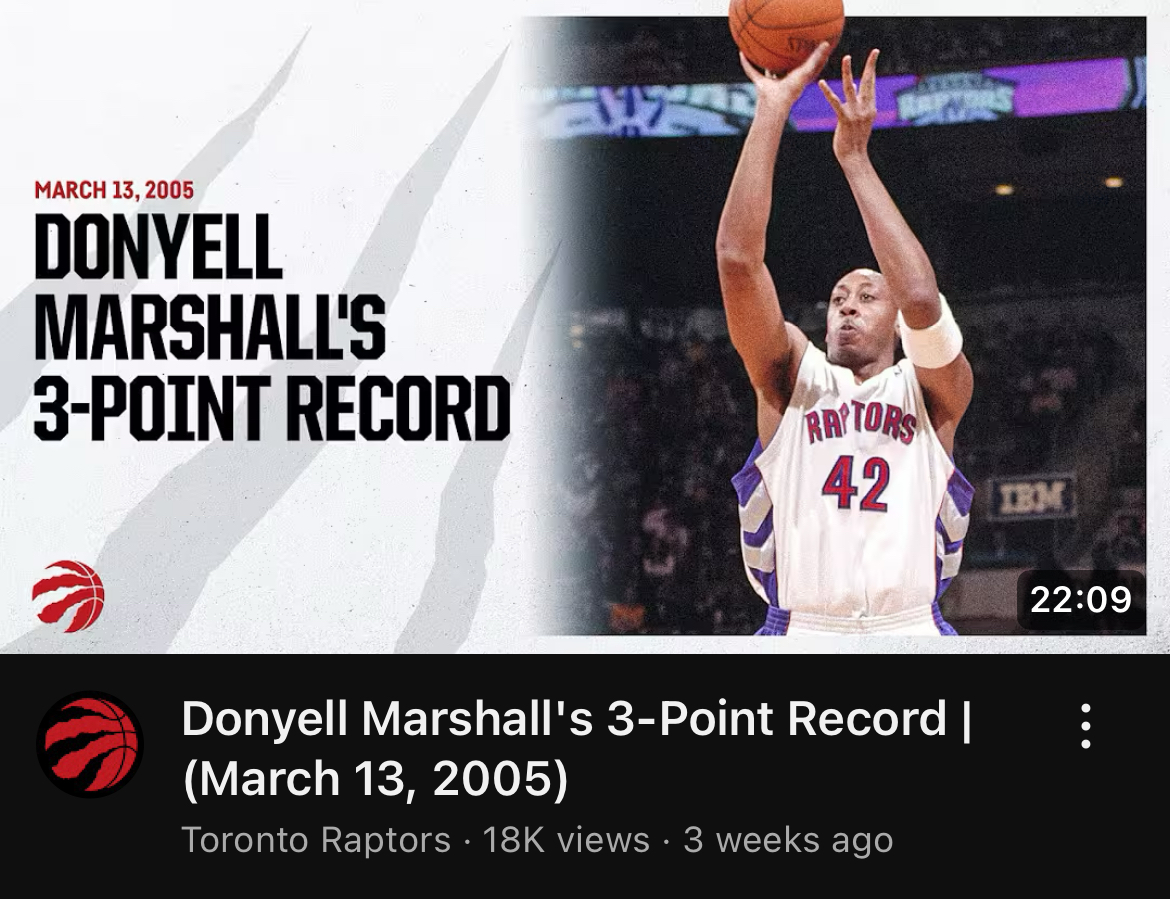 I have no idea why the YouTube algo is showing me Raptors videos but this one caught me by surprise! I didn’t know Marshall could stroke it like that. All of my memories on Marshall are when he played with the Cavs. And he was Meh at best.