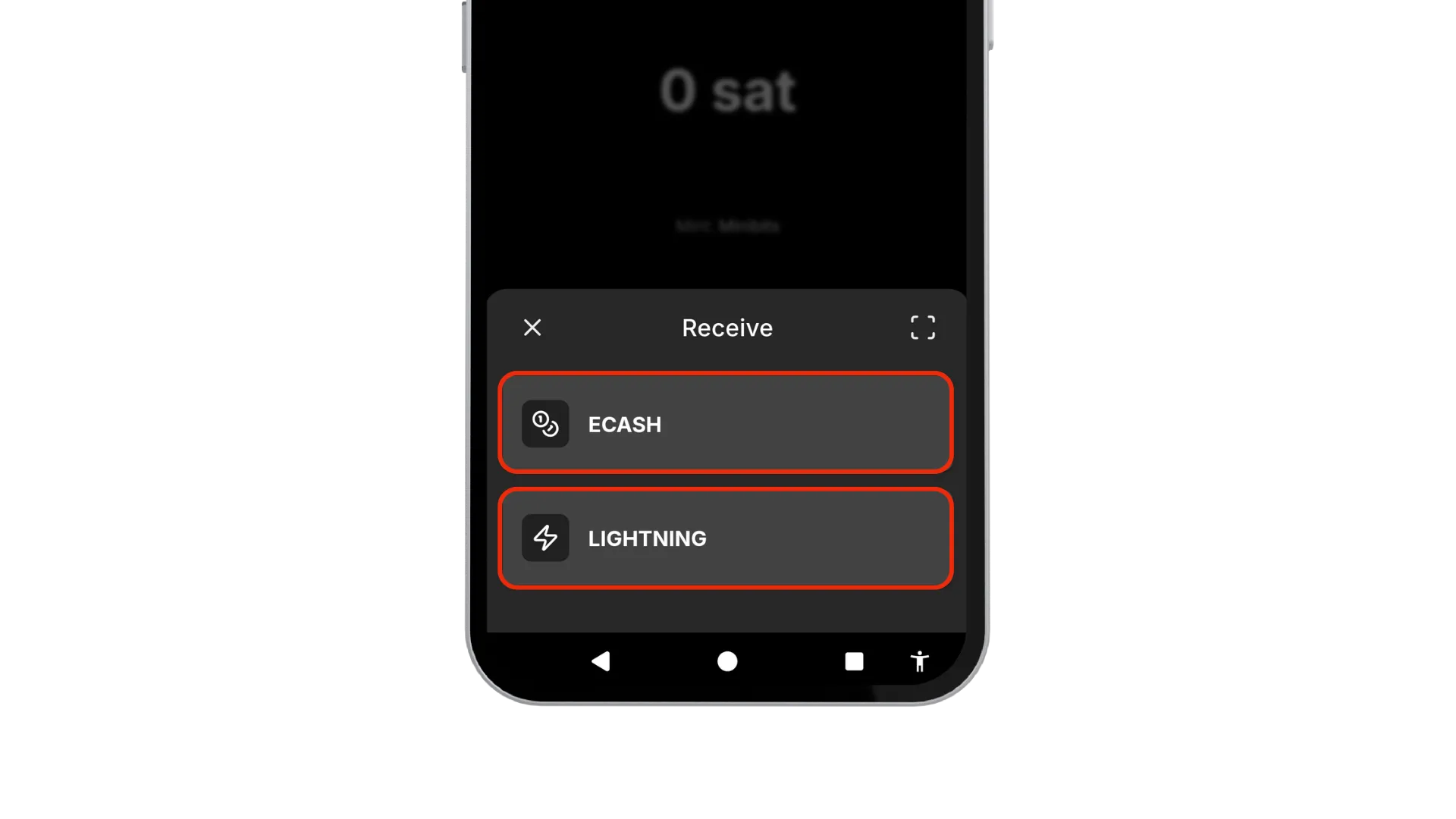 The ecash method lets you receive tokens directly from another ecash wallet. Start by tapping the