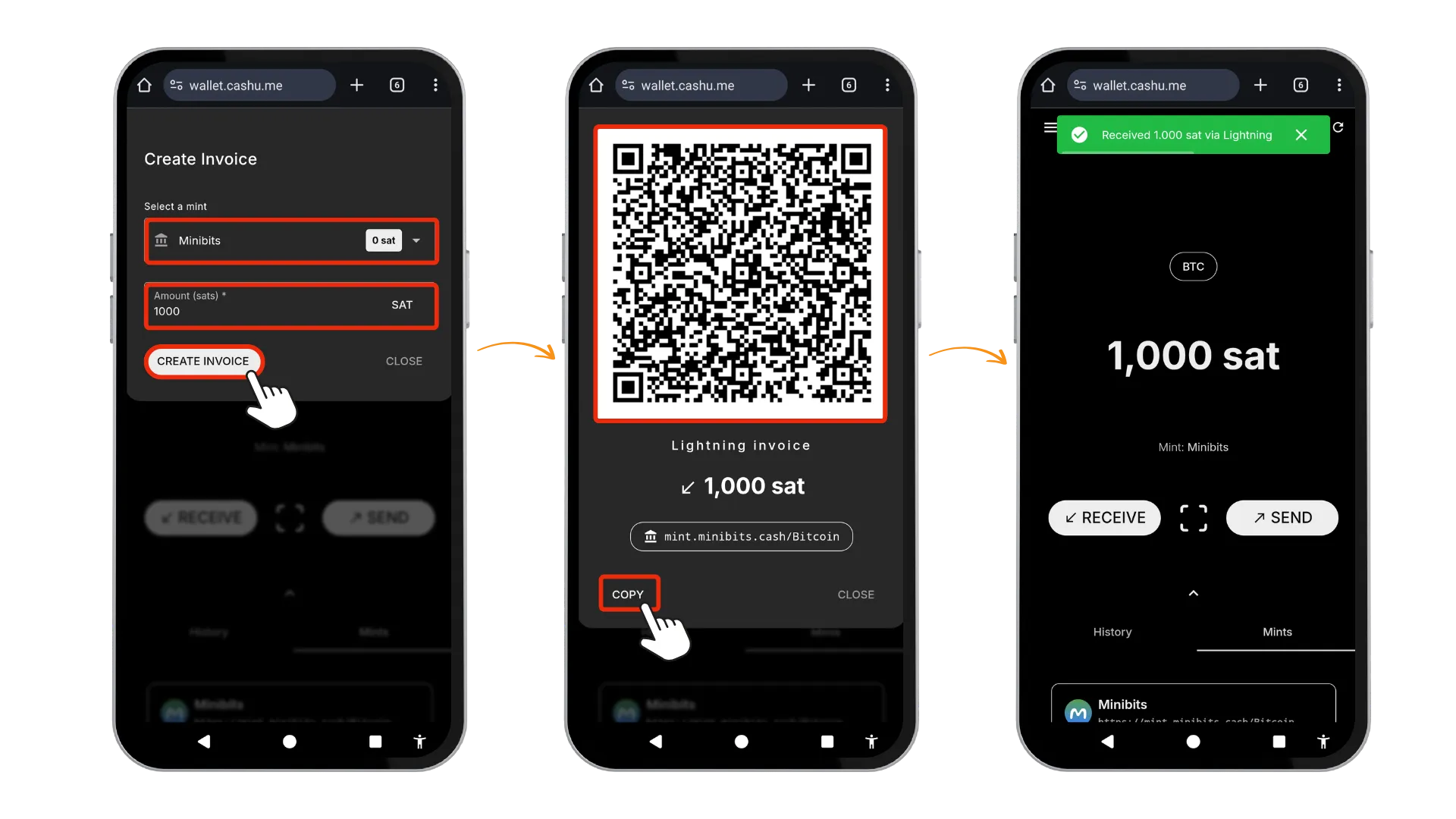 the invoice and paste into another wallet to pay and fund your cashu.me wallet.Receiving ecash