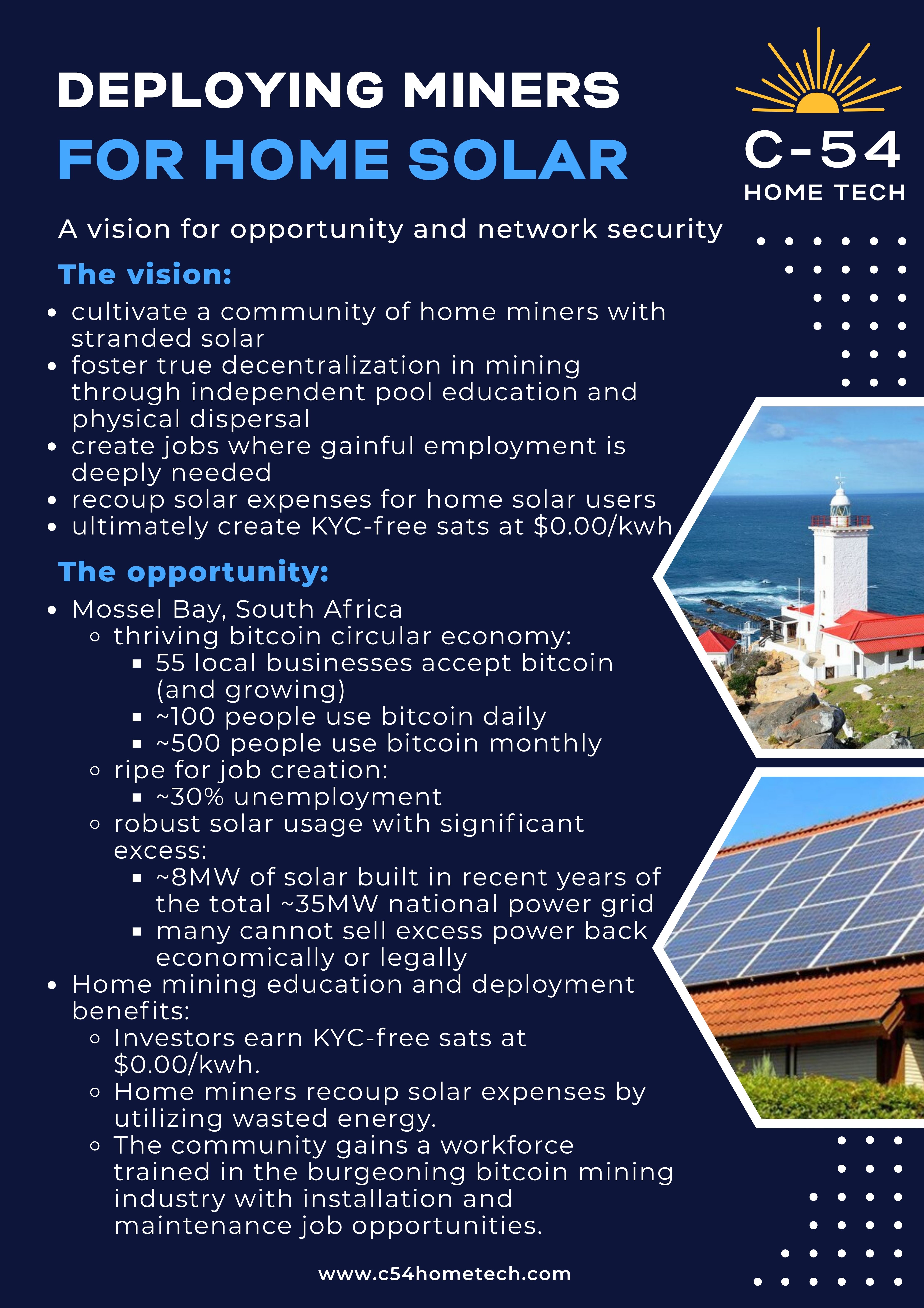 So on one hand, there is a growing community of bitcoiners who understand the benefit of the network, yet are often times trying to find jobs in a place with 30% unemployment. On the other hand, you have a wealthy class, who may have a thing or two to learn about bitcoin, and have built a massive green energy source, that is expensive and hard to use. The aforementioned solar installer told me that he thinks about 60% of his clients would be interested in recouping their solar investment.