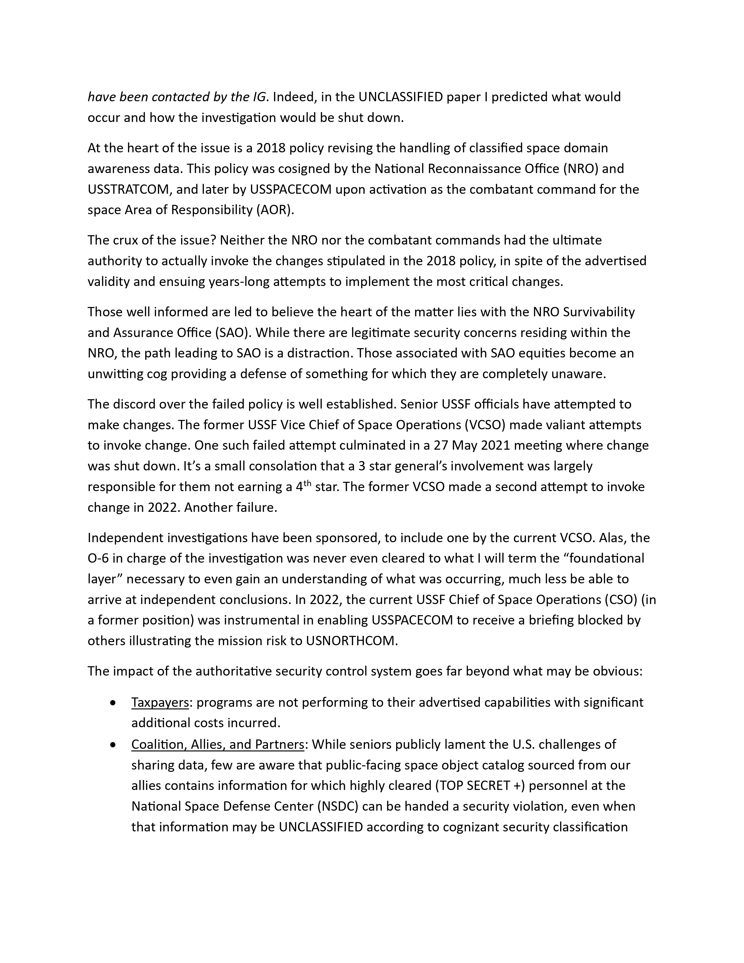 - Unpublished security rules are being enforced. Guardians have been indicted and removed from duty, threatened with a court martial, yet not provided an opportunity to provide their perspective. All the while, their chain of command was never informed of the nature of the wrongdoing. This was accompanied by an investigative report with many “factual inaccuracies” (high confidence).