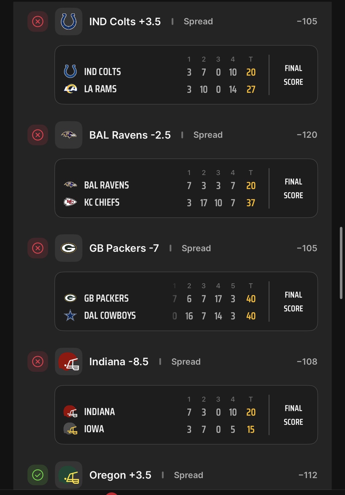 In his defense the Indian game was a bad beat with the team taking a safety to ensure the win. A lot of bettors got them at +6.5 on draft kings they were bid up to +8.5