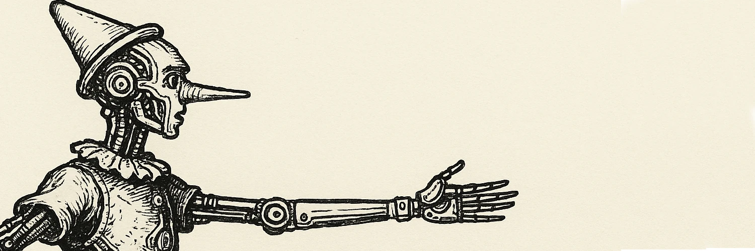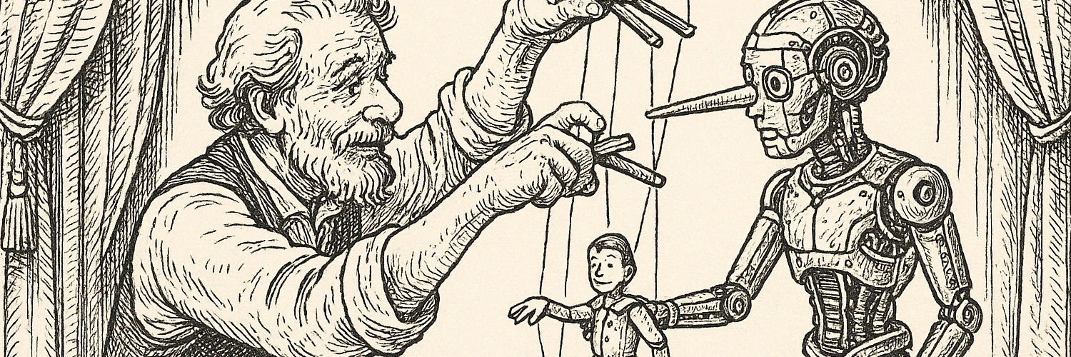 The thing Geppetto is talking to -- Pinocchio -- isn't really even the LLM running in Pinocchio's head. It's what that particular weighted model predicts will come next after a very specific system prompt. Pinocchio is still a puppet, just one with strings that are not so obviously connected to Geppetto's fingers. Every word Geppetto says to Pinocchio is like a finger tugging the puppet's string, even though the string runs through the more complicated system of the LLM.