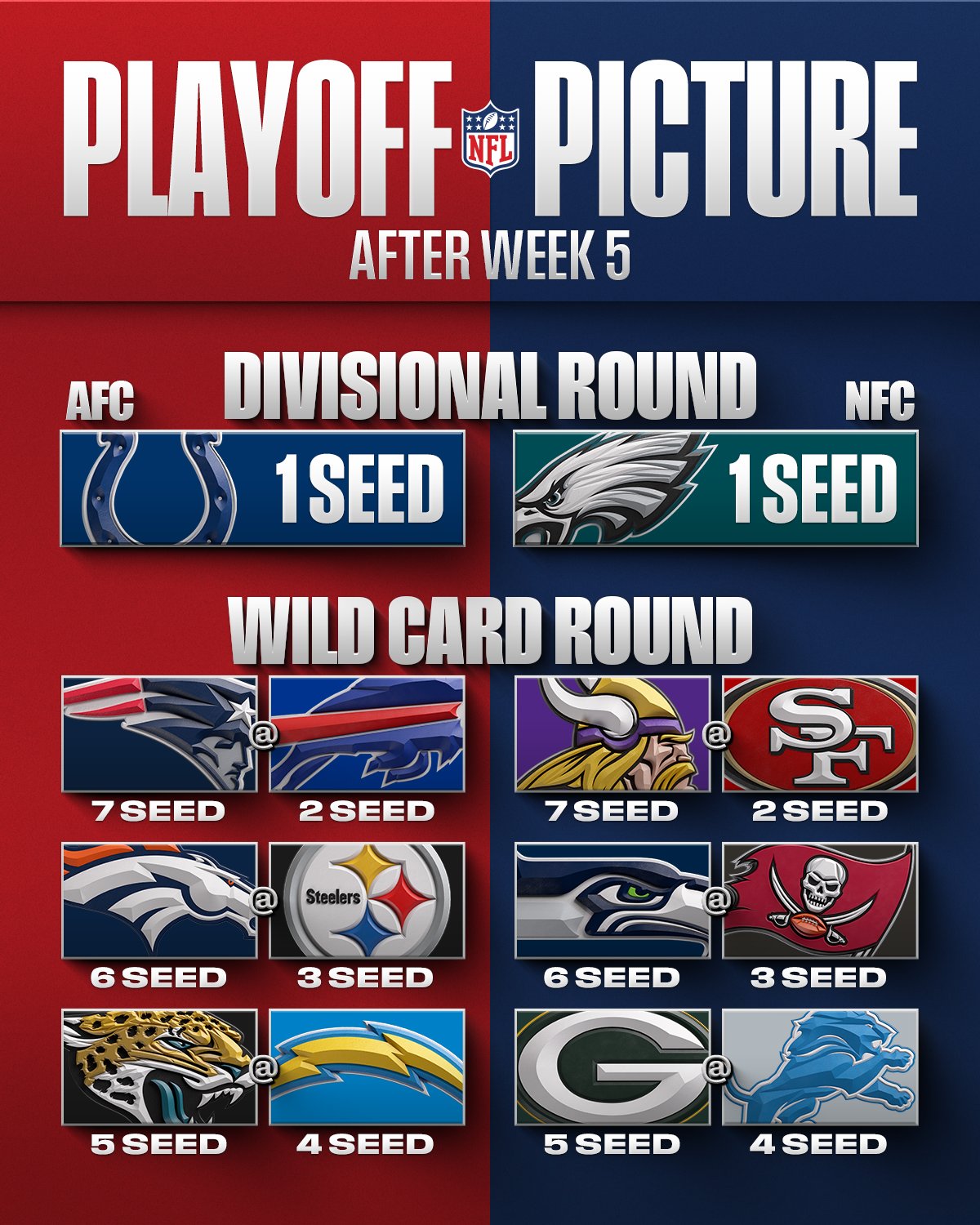 It's murky right now. Many teams have the same records so it comes down to tiebreakers like divisional and conference record and some teams have only played one divisional game so not much of a sample to judge where they will be after 6 divisional games.
