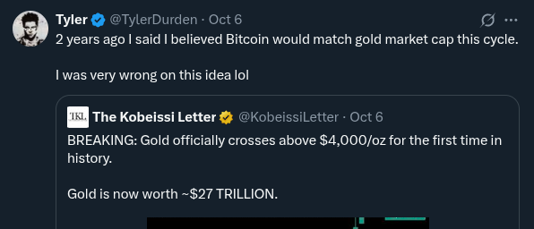 Since around 2020 there's been a lag behind gold. Anyone have any idea what explains that? Is it gold has stood the test of time and isn't going away any time soon, where as Bitcoin is still a "just in case" hedge to gold?