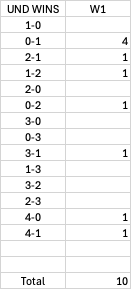 In 10 out of 39 matches, the underdogs won the match. In these cases, a 40% of the times the result was 0-1. Only in two matches, the final result was 2-1 or 1-2.