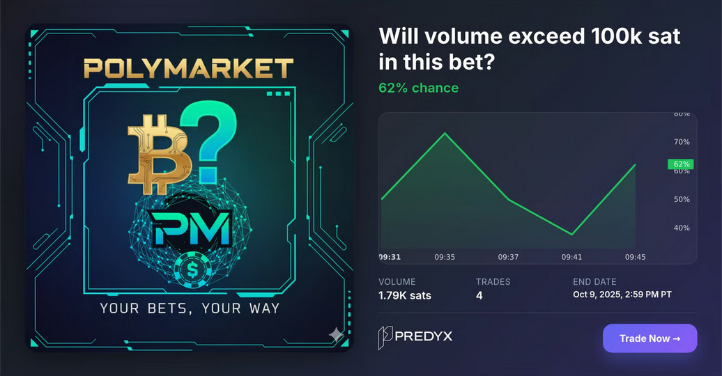đ¨ 12 HOURS LEFT, DEGENS đ¨ Will this giga-brain market smash 100,000 sats volume before expiry? Current odds say YES, but talk is cheap â send your sats or stay spectator. âĄď¸ https://beta.predyx.com/market/will-liquidity-exceed-100k-sat-in-this-bet-1760002259