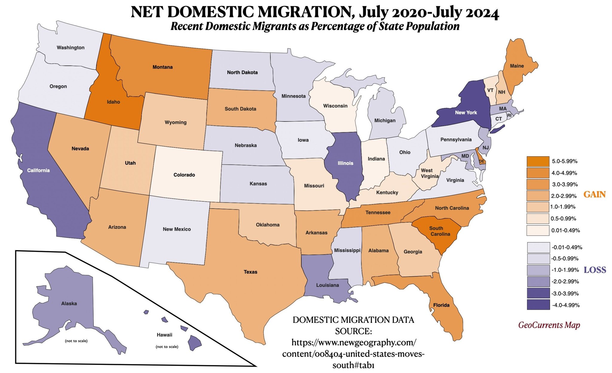 I've included the state income tax rate because it's interesting. It seems like the reasons people move aren't just taxes (but they also are probably moving because the taxes are high).