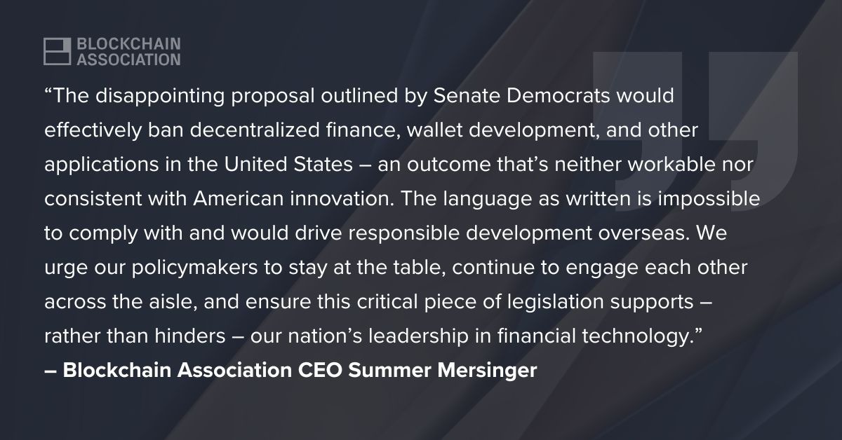 Yesterday, Senate Democrats produced their own version (Google Doc link) of regulations for DeFi and it is, apparently, quite bad.