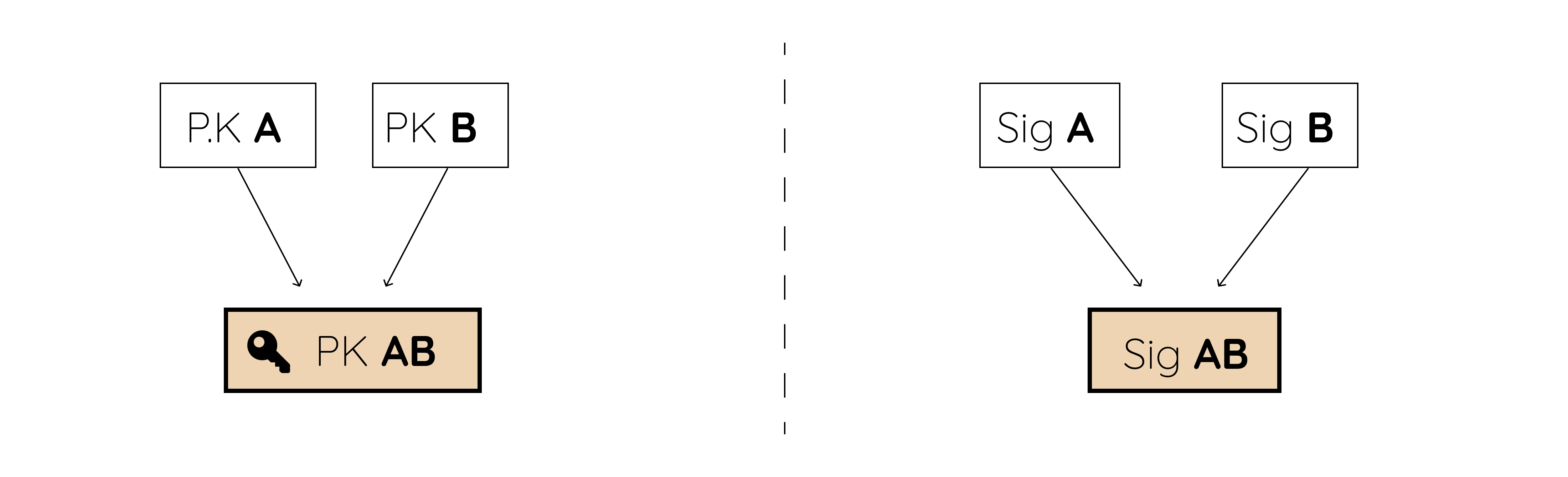 It allows multiple participants (A and B) to jointly sign a transaction as if it came from a single key.