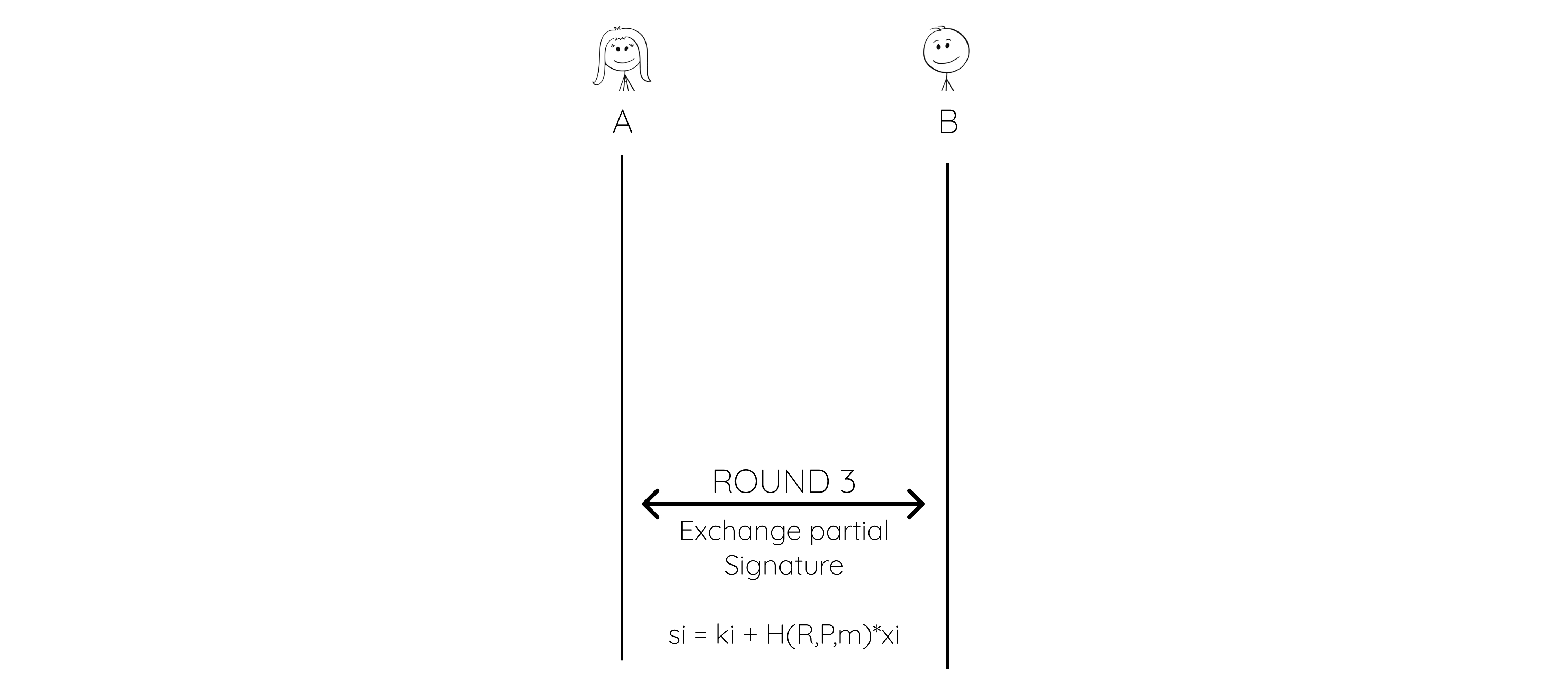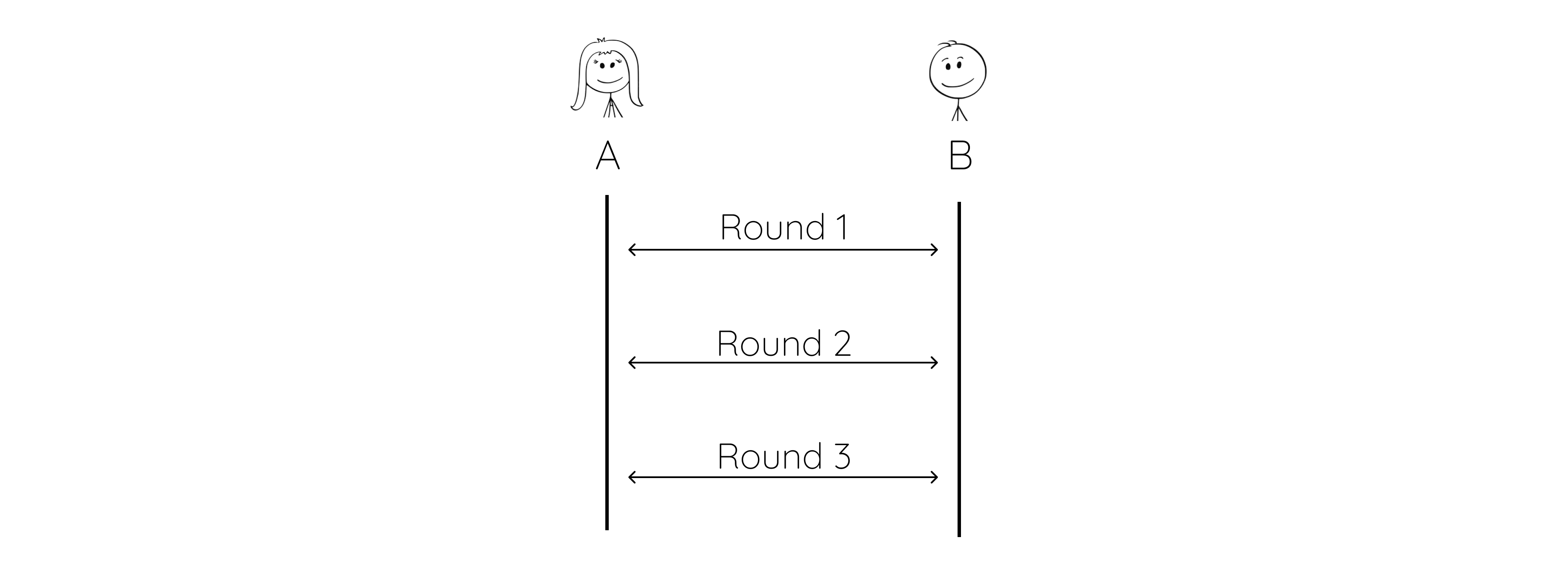 requires 3 rounds of communication between A and B:Before explaining the 3 rounds of communication