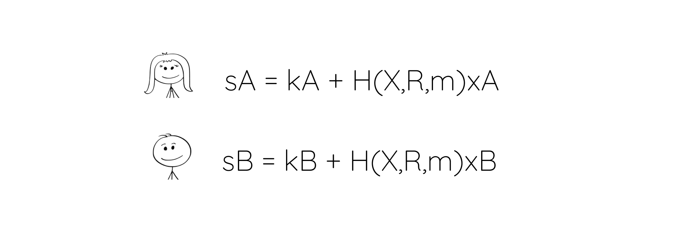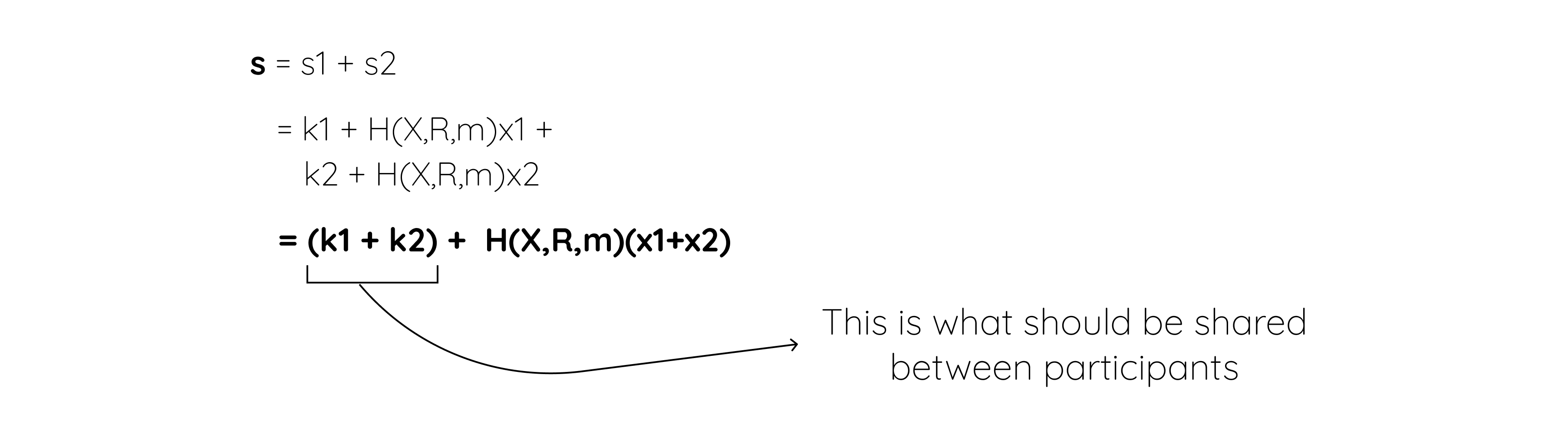 s = (k1 + k2) + H(X, R, m)(x1 + x2)