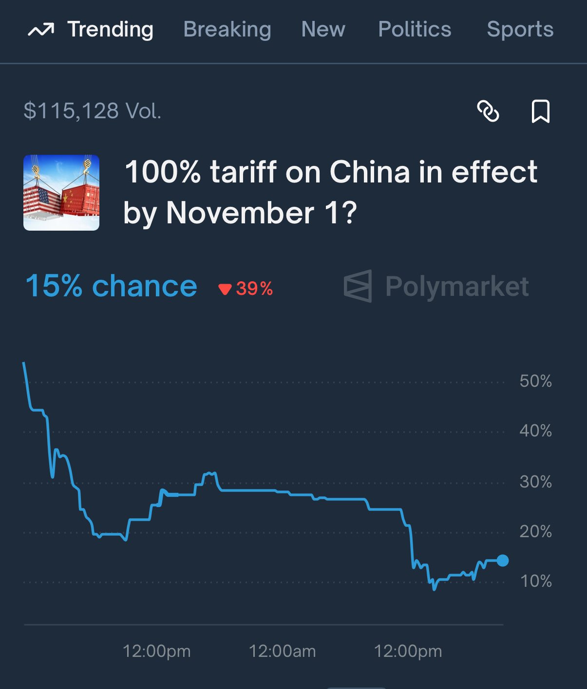 The market chose to focus on the tone—and ignore the harsher content. On Polymarket, only a 15% chance was priced in.