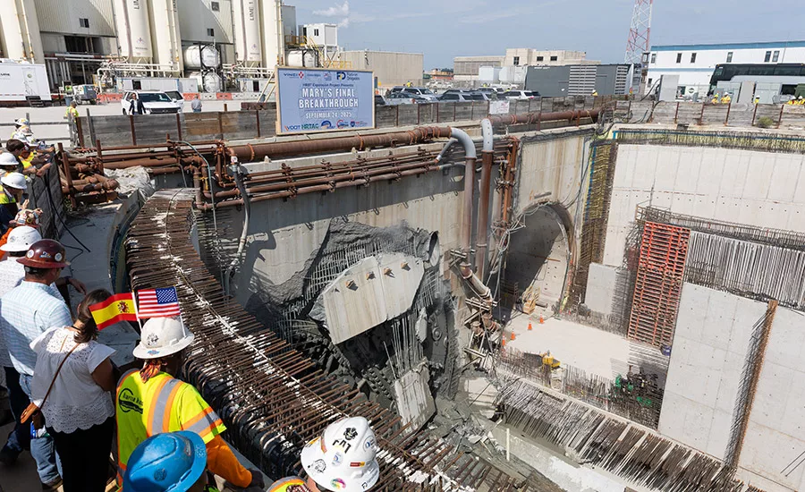 The $3.9-billion expansion of the Hampton Roads Bridge-Tunnel in Virginia reached another milestone on Sept. 24, as its tunnel boring machine broke through a retaining wall to complete a second 46-ft-diameter, 7,900-ft-long tube that will eventually add much-needed capacity for the congested crossing.