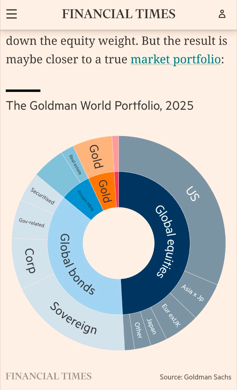 One idea that's been around the finance block a lot is that "Global Index" or broad portfolios available in no way approximate the academic finance idea of "the market." (think CAPM, Sharpe, risk-free rates etc).