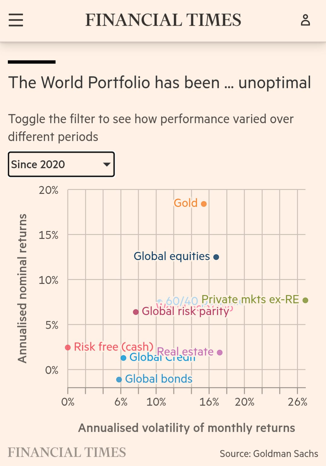 Goldman is out with a new returns report, looking at various timelines (1950-1990-2010-2020) until today and trying to construct a PERFECT WORLD PORTFOLIO.