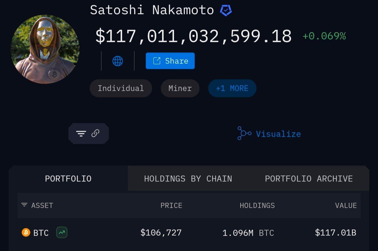 Damn!! Satoshi just lost $20B since Bitcoin’s peak on Oct 7, 2025.