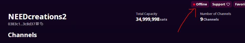 Oh, I didn't realize you were pointing to the offline tag. That must be a mistake by ambos because currently my node is online and all my channels are up...