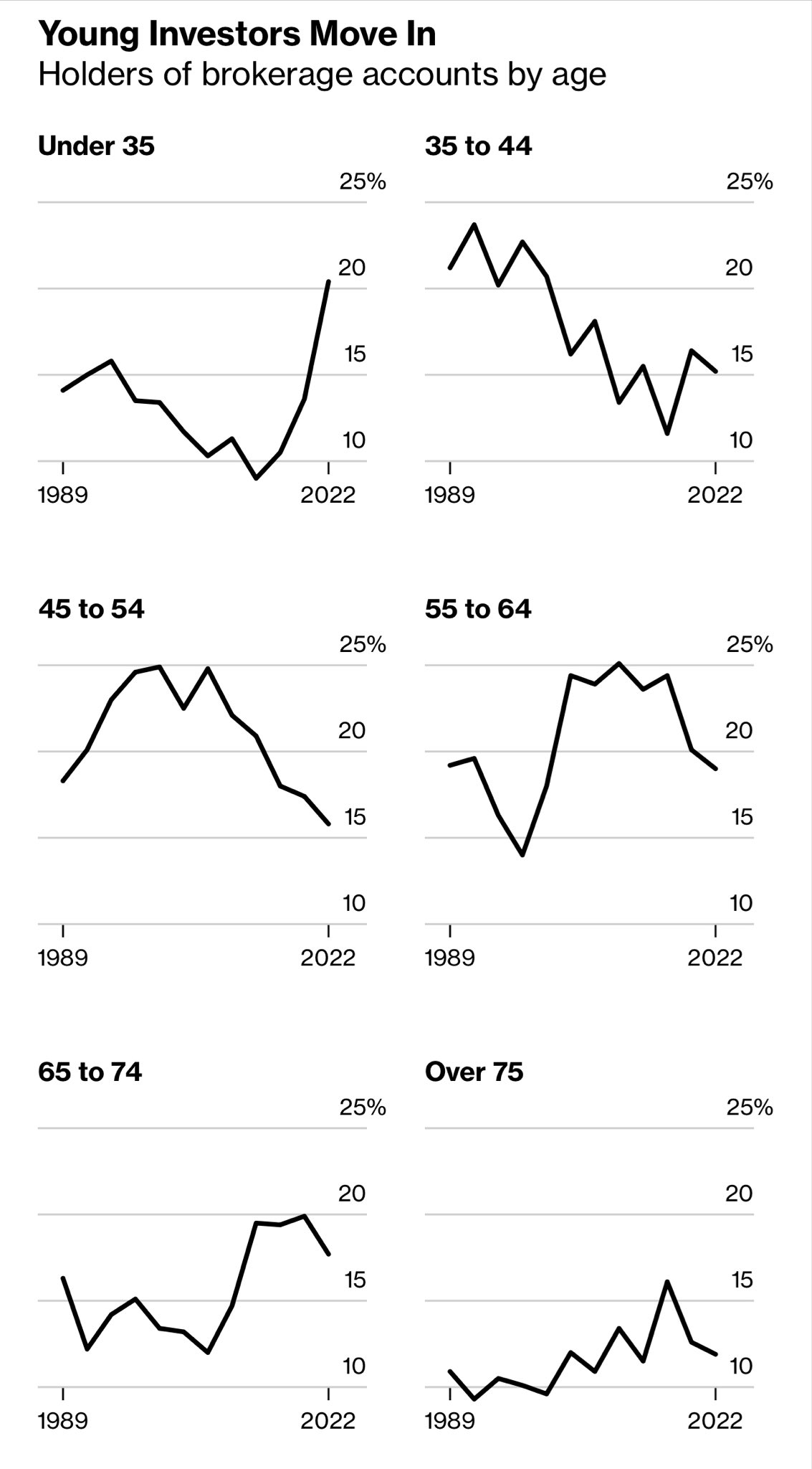 The data is clear: investors under 35 have never had such a strong presence at brokerages, while older investors are losing ground.