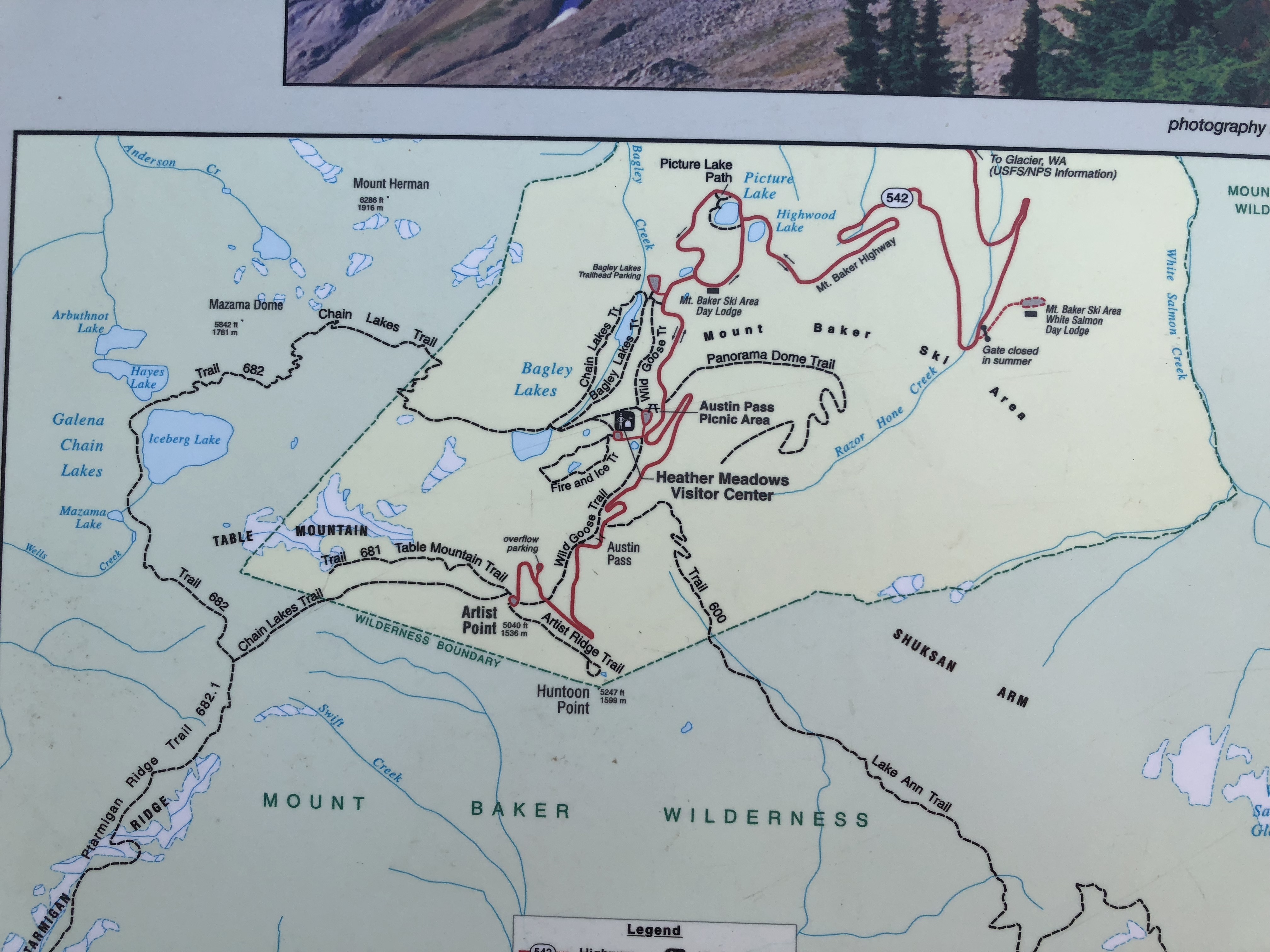 This week we head to Heather Meadows and explore the beautiful scenery in the area. Heather Meadows is a subalpine recreation area located in Mount Baker State Park, with numerous trails and beautiful views. We briefly mentioned this place in past posts, because both Chain Lakes Trail #895238 and Ptarmigan Ridge Trail #887421 are both accessed through Artist Point, which is the highest elevation vehicle accessible place in Heather Meadows.