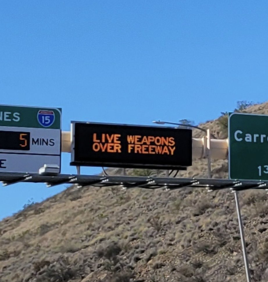 The vehicles involved were parked on a major off-ramp for Interstate 5 near Camp Pendleton, a 17-mile stretch of which had been ordered closed by California Governor Gavin Newsom after he was informed that the during ceremony the military intended to fire several munitions over the highway, which is one of the busiest roads in the United States. Newsom was mocked by members of the Trump Administration for his decision to close the highway, with military officials claiming that I-5 was “safe” to remain open during the live-fire demonstration by the Marines.