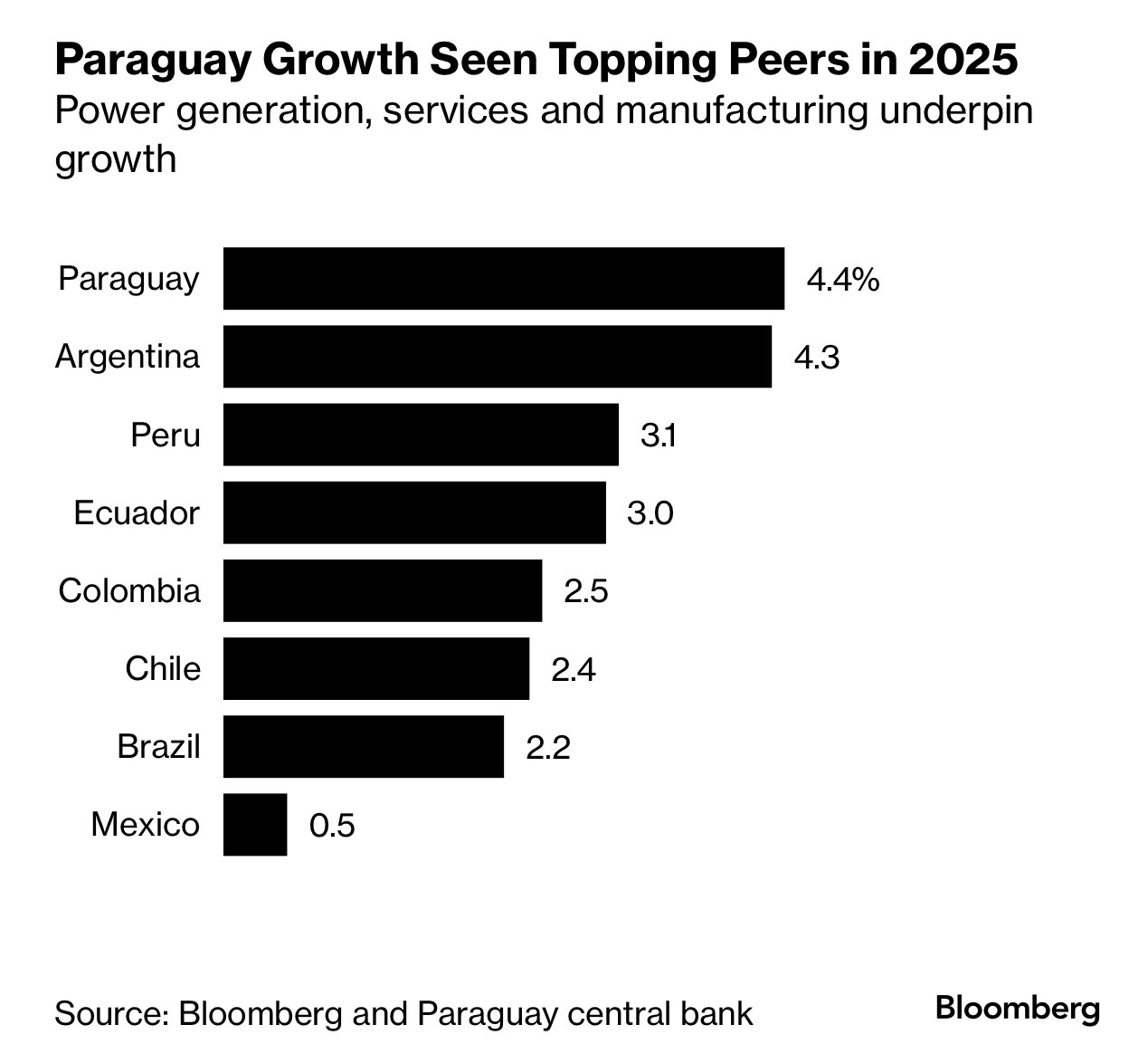 With a projected growth rate of 4.4% in 2025, Paraguay is expected to lead Latin America, even ahead of Argentina (4.3%) and well above Brazil (2.2%).
