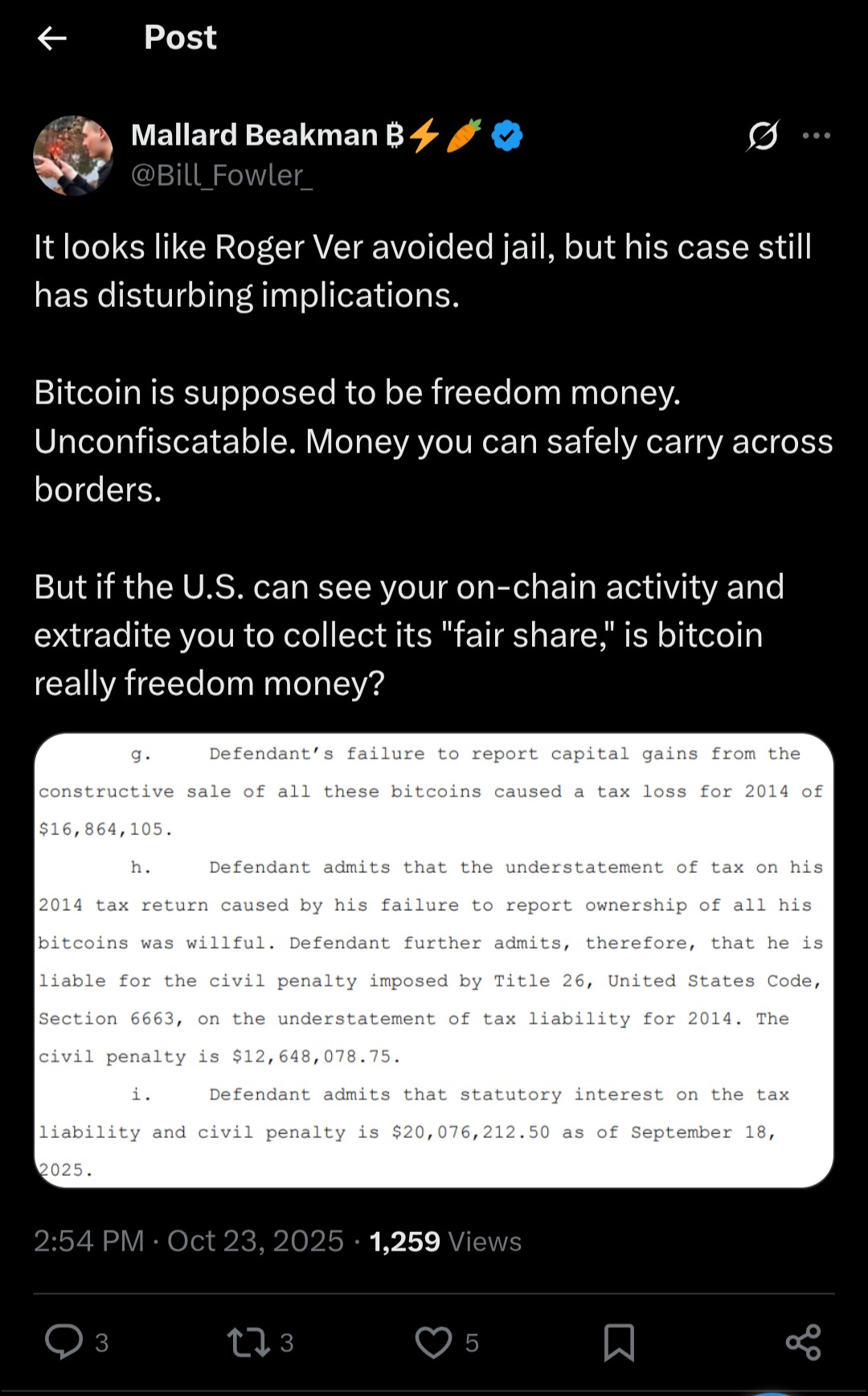 I do not understand why this case is linked to bitcoin. Allegedly he didn't pay some fiat taxes. Why people are not outraged about taxes but shit on bitcoin? Bitcoin have nothing to do with taxes. If you are smart enough you can easily demolish any demand to be robbed (aka taxes).
