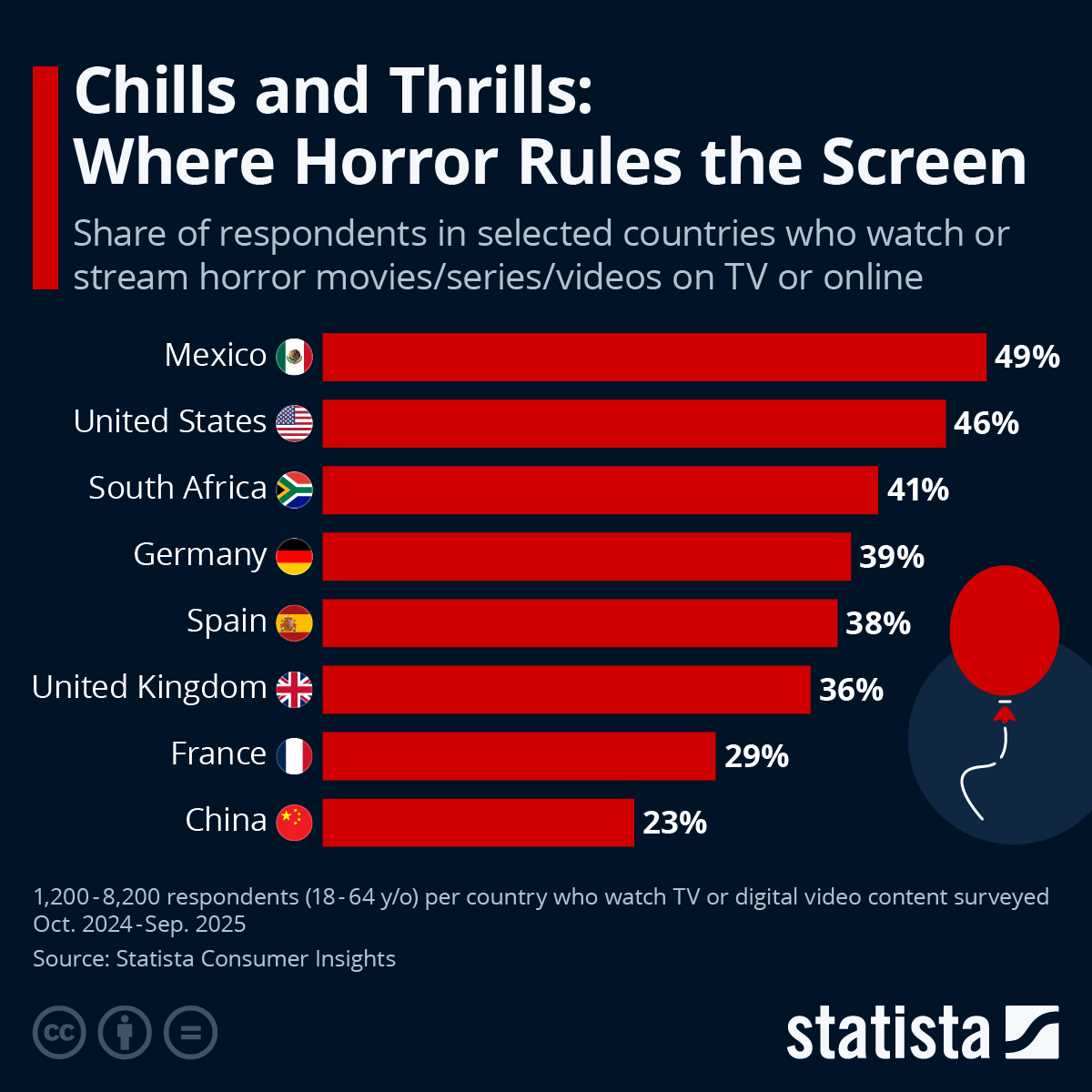 The Statista data for other countries is locked—only subscribers can check it. But based on this graph, it looks like the horror movie market is blowing up over there. We gotta be real, watching horror flicks is kinda sadomasochistic. ahahah