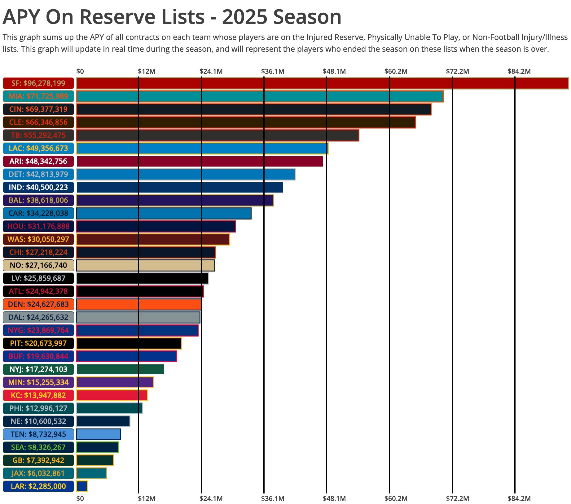 This doesn't include the guys that are out but not on injured lists like Purdy. Still 5-2 but it feel tenuous. Oh well, Go Niners!