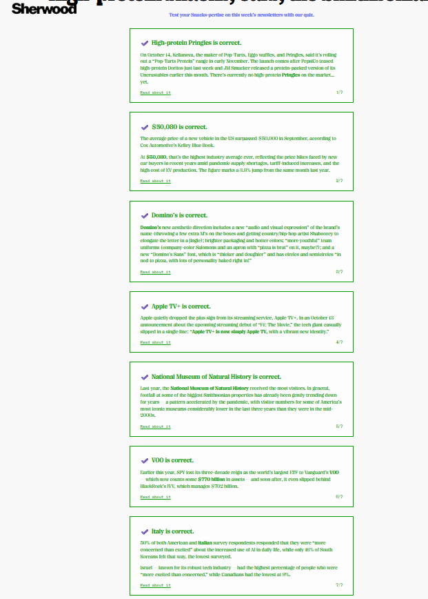 I was so confused by the first question about high protein snacks. I was looking for the, "all of them" option because there's no way any of that is good for you.