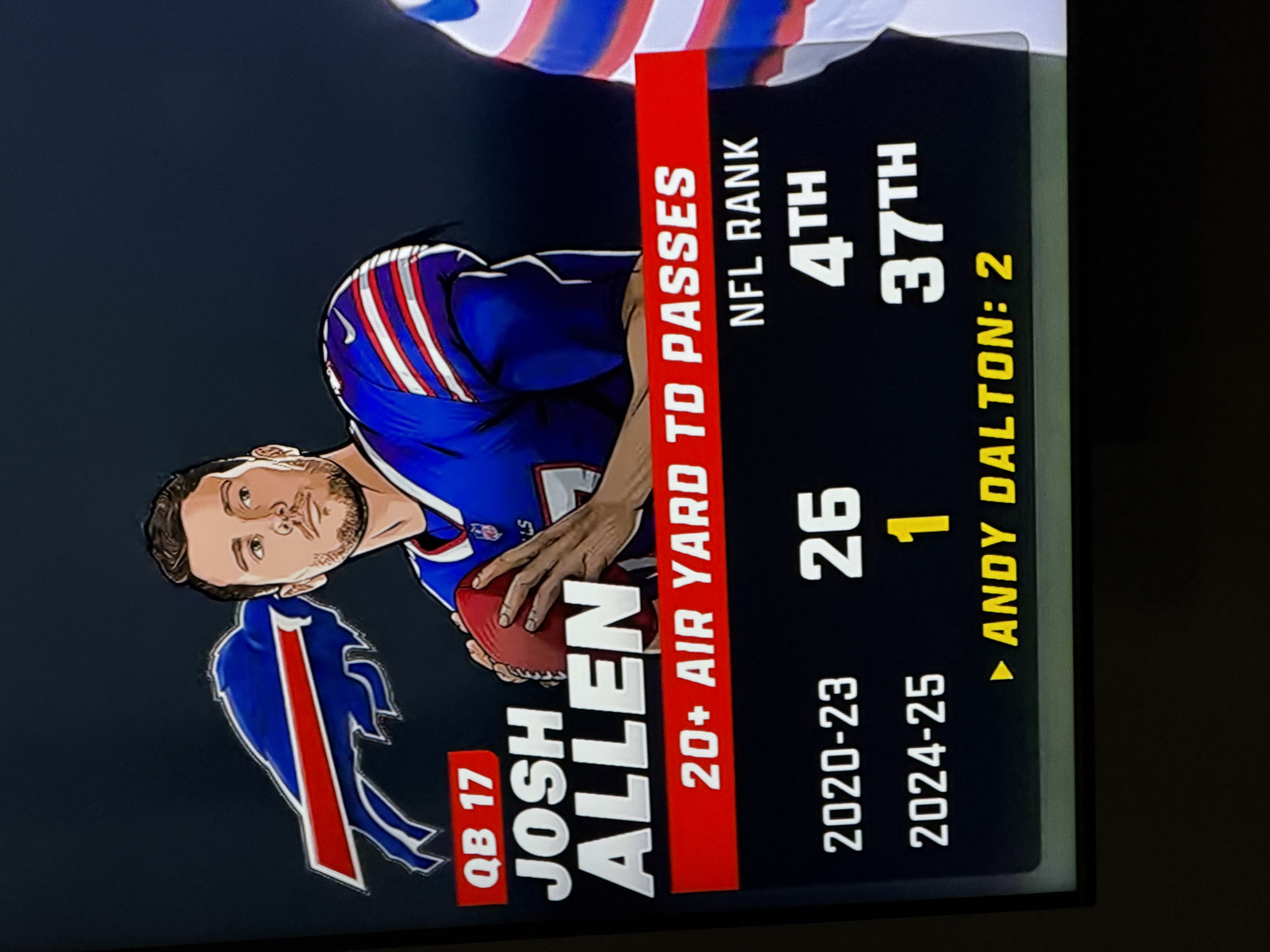 ITS CRAZY TO ME THAT ANDY DALTON A BACK UP HAS MORE 20+ AIR YARD PLAYS THAN JOSH ALLEN
