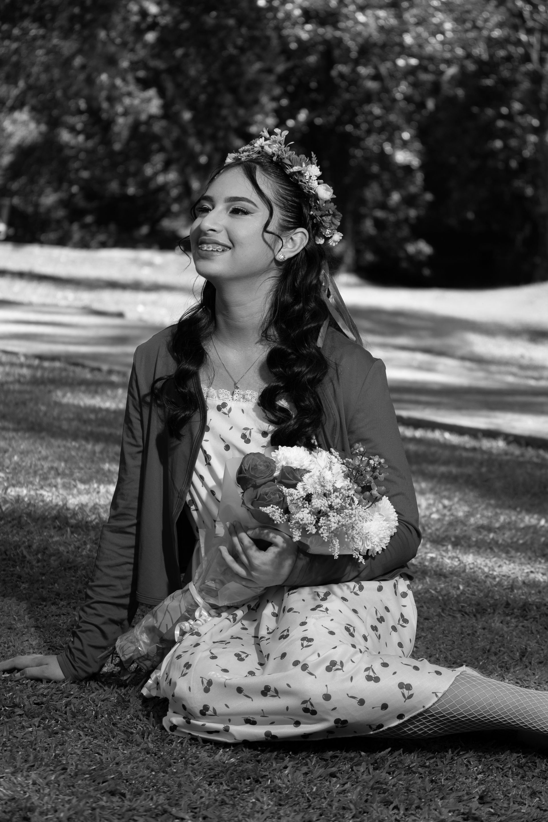And to conclude the photography session, this photography of the girl sitting with her bouquet of flowers:
