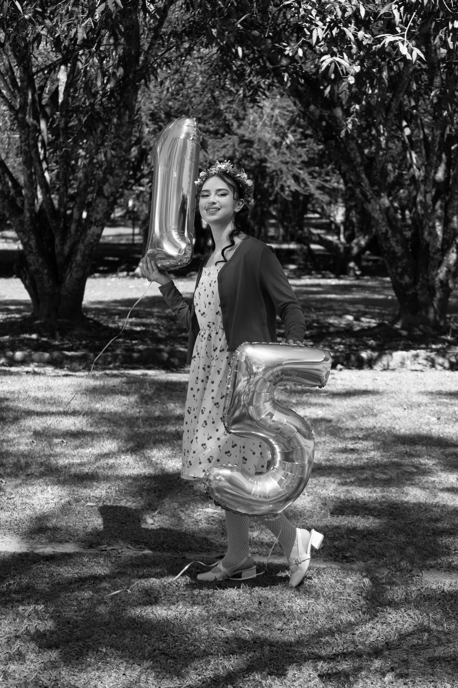 Then we took a couple of photographs with the number 15 balloons for her birthday: