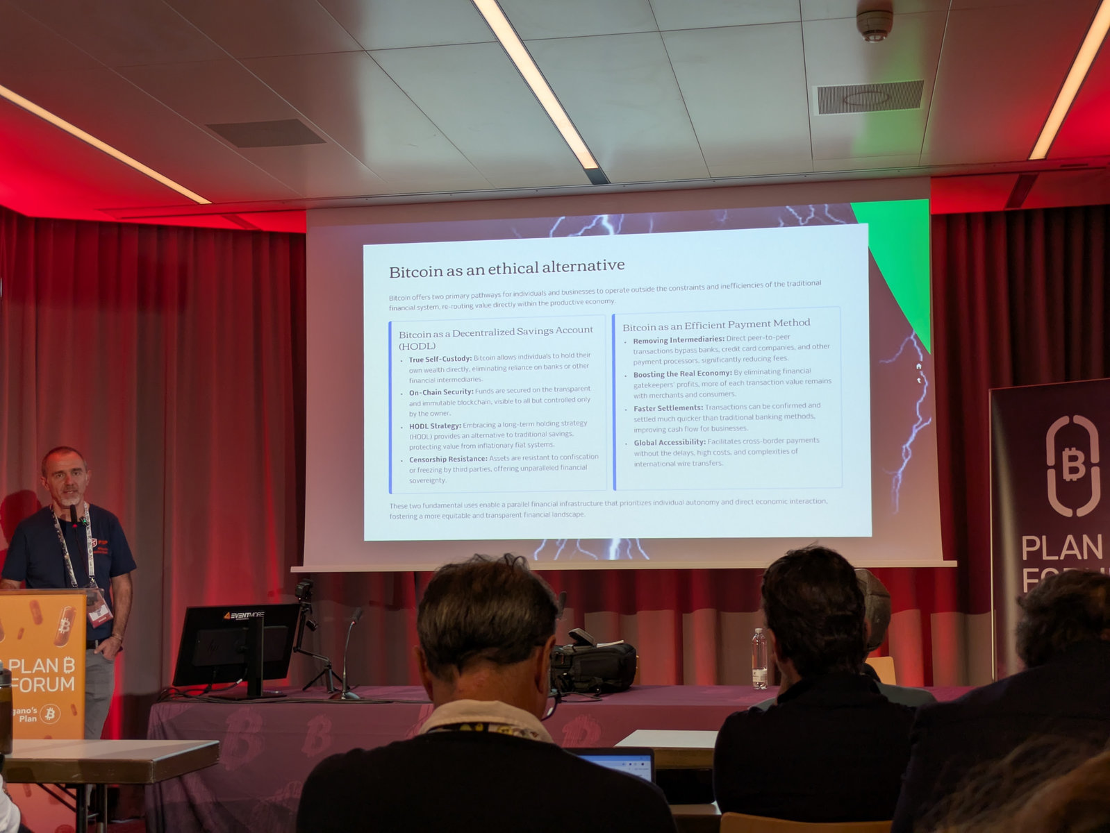 The organizers did a really great job compared to last year. They made 2 rooms bigger for the talks, and the networking area was moved to the tent outside. The PlanB Forum apps is really well-made to connect with other bitcoiners and to network easily.