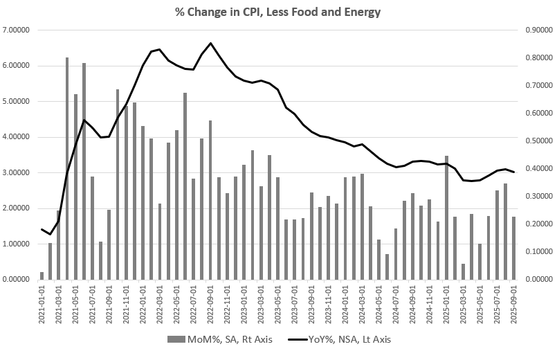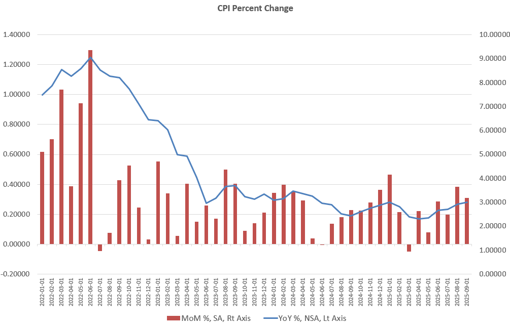 September’s year-over-year CPI increase was 3.0 percent, the largest annual increase in 17 months.