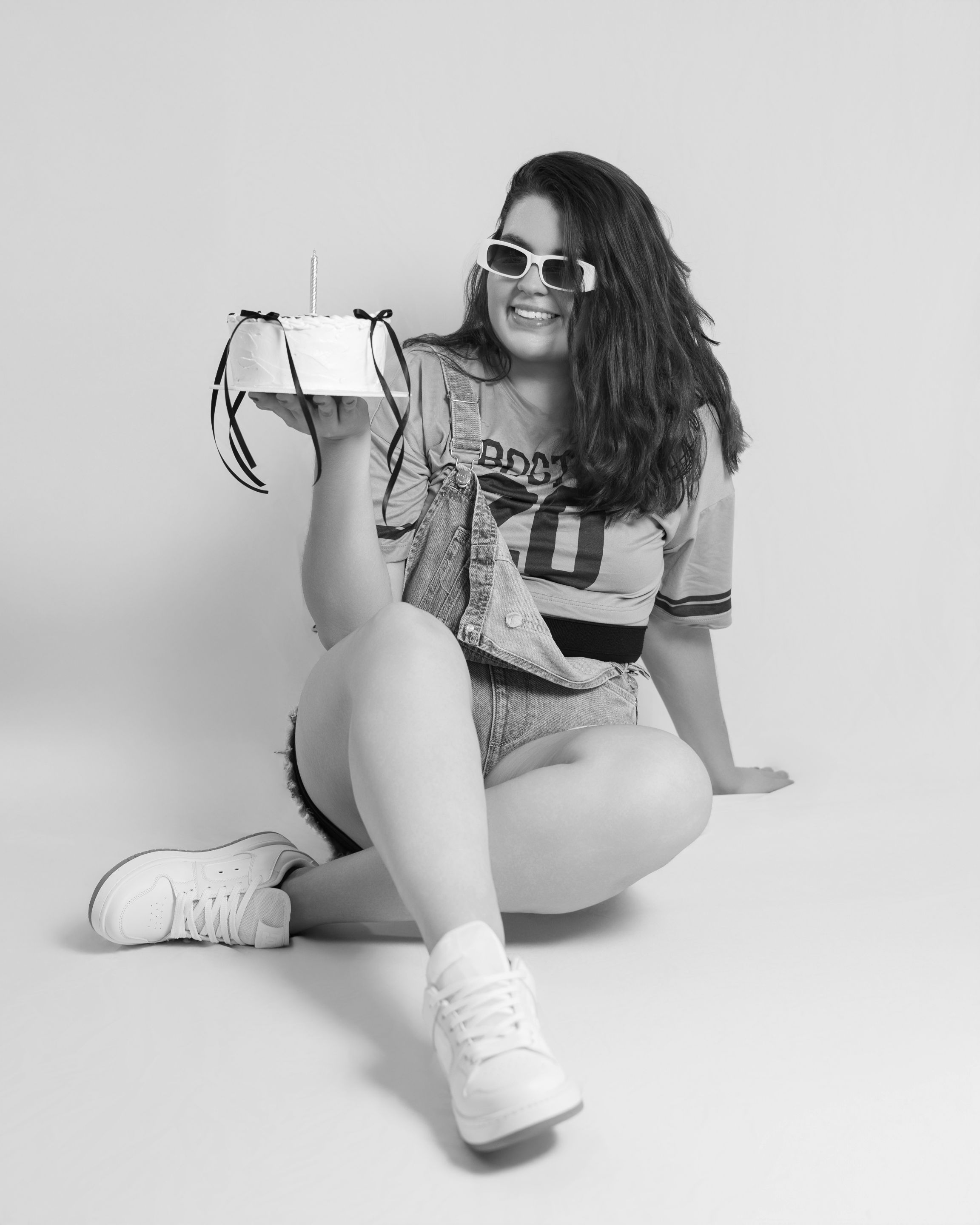 Then we started the actual photography session, and to give it the birthday theme, we used a cake: