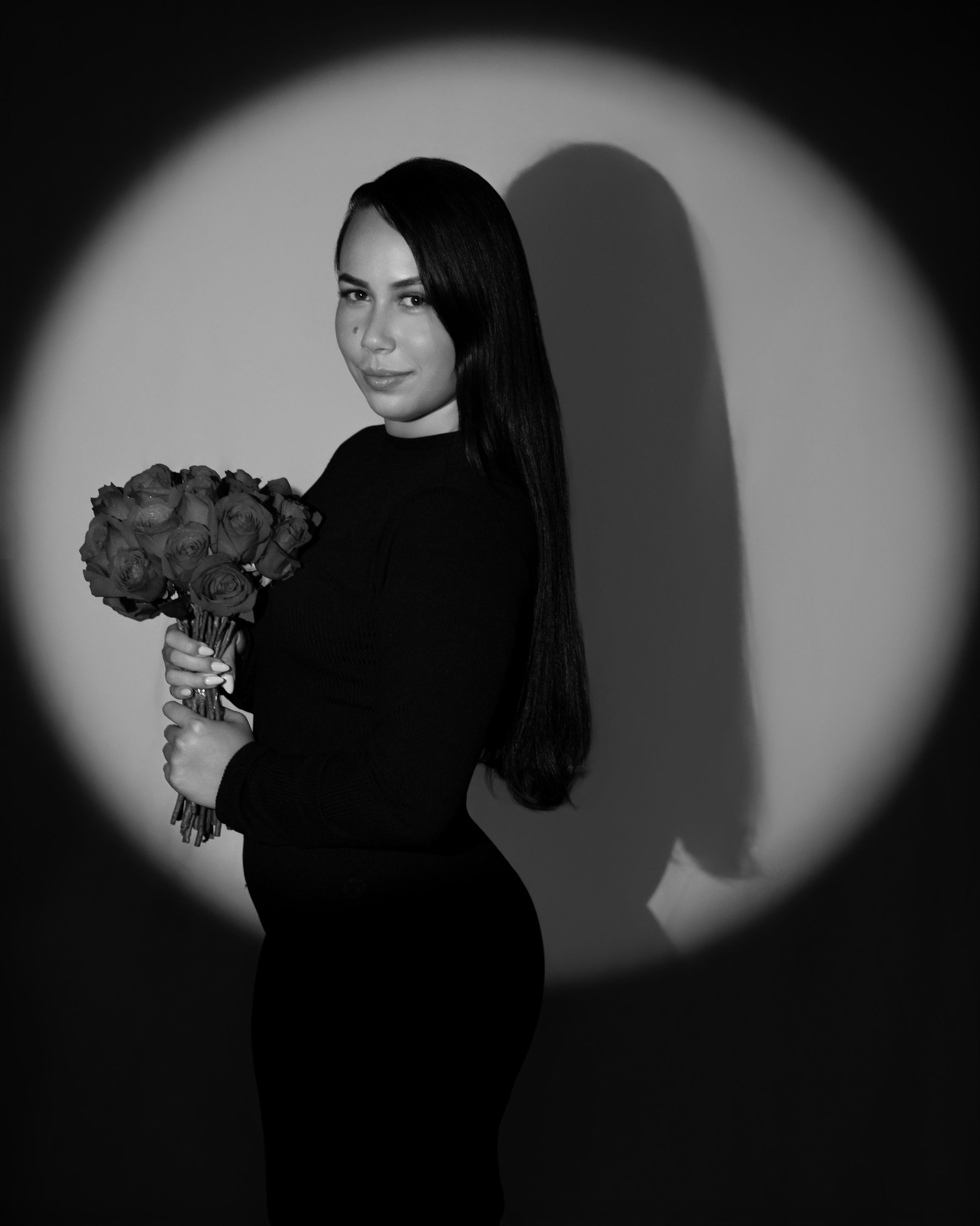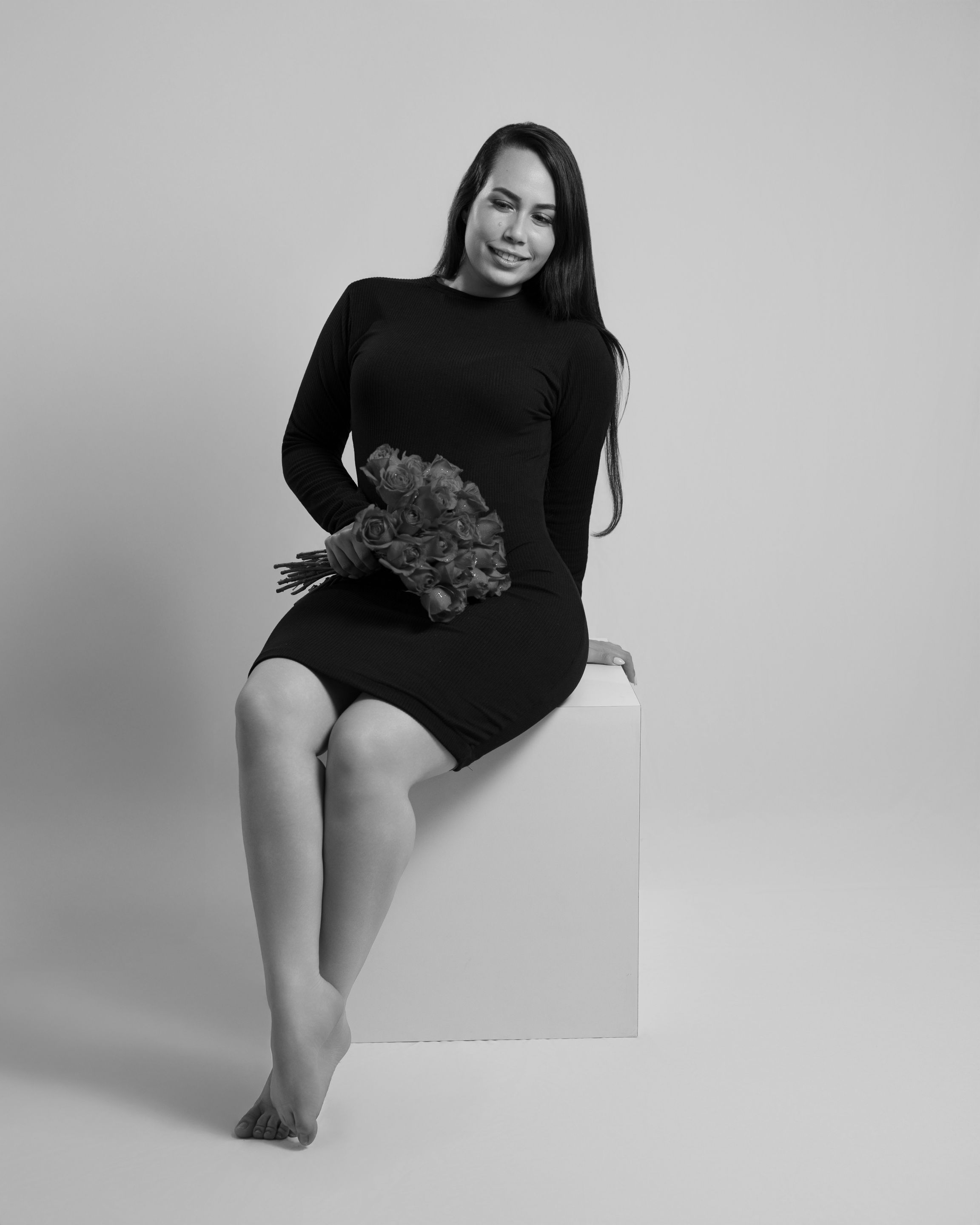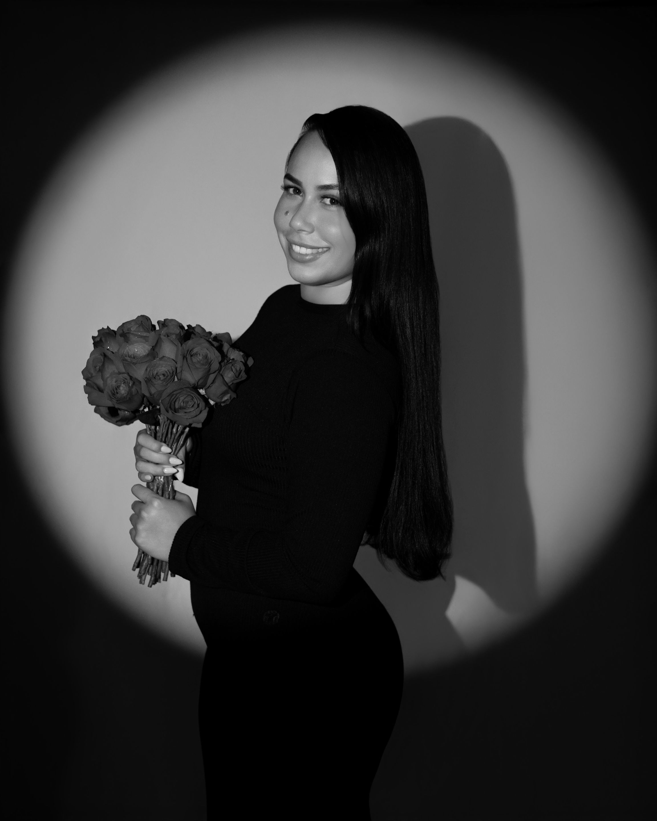 As birthday accessories, the girl only used a bouquet of roses. We started with a seated photography: