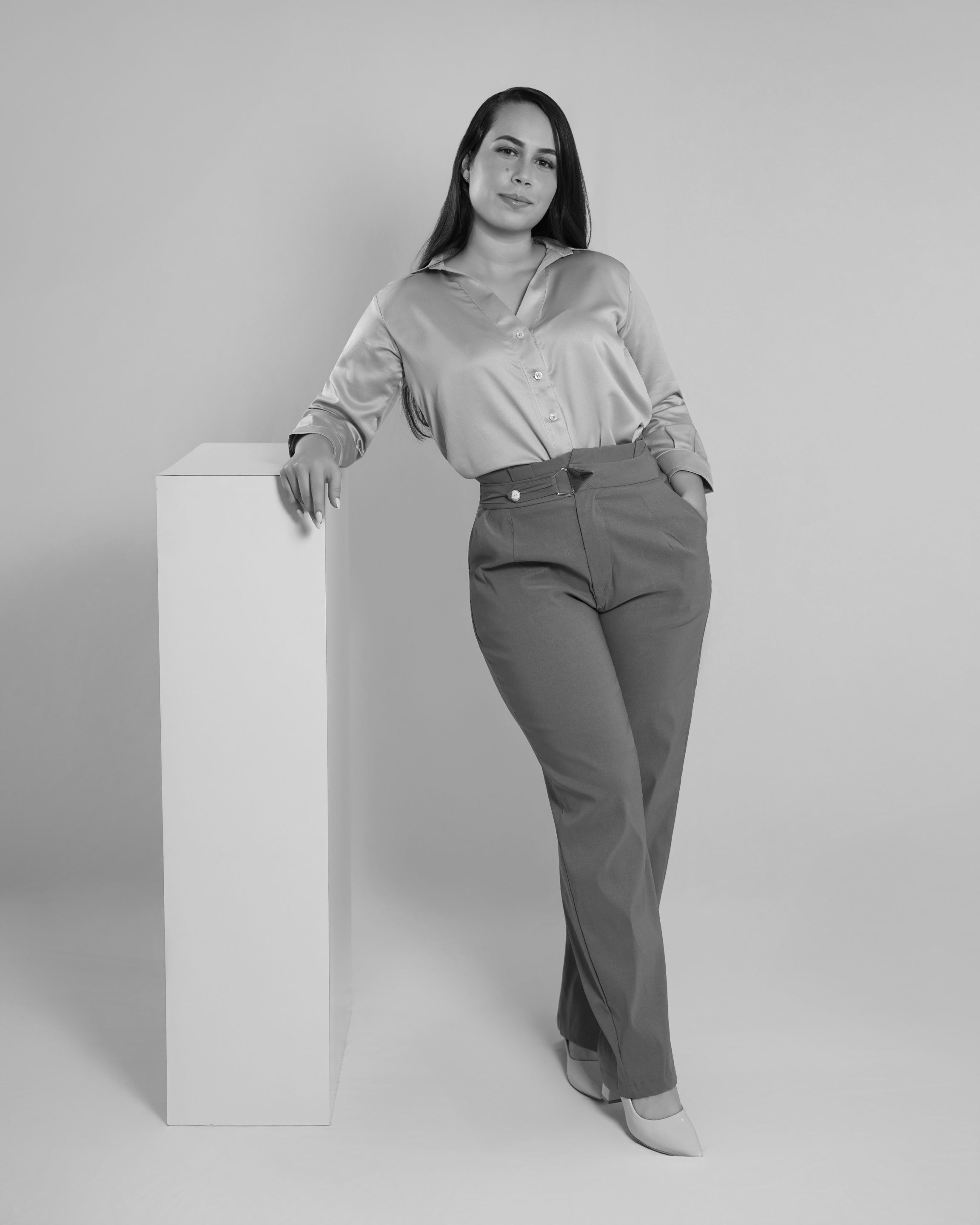 We started with the professional look outfit, as that is how the girl arrived dressed at the studio. The first thing we did was a standing photographs:
