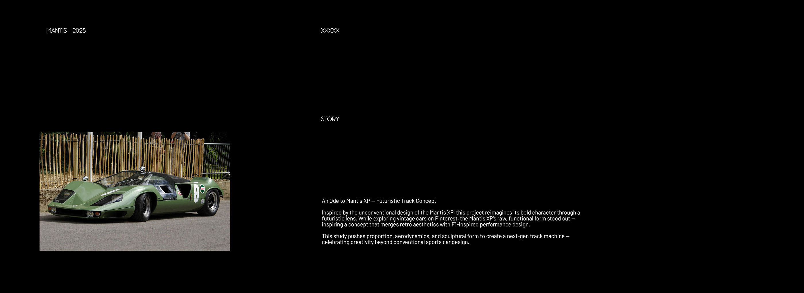 The concept car draws profound inspiration from a historic predecessor: the Mantis XP, an experimental racing prototype from 1968.