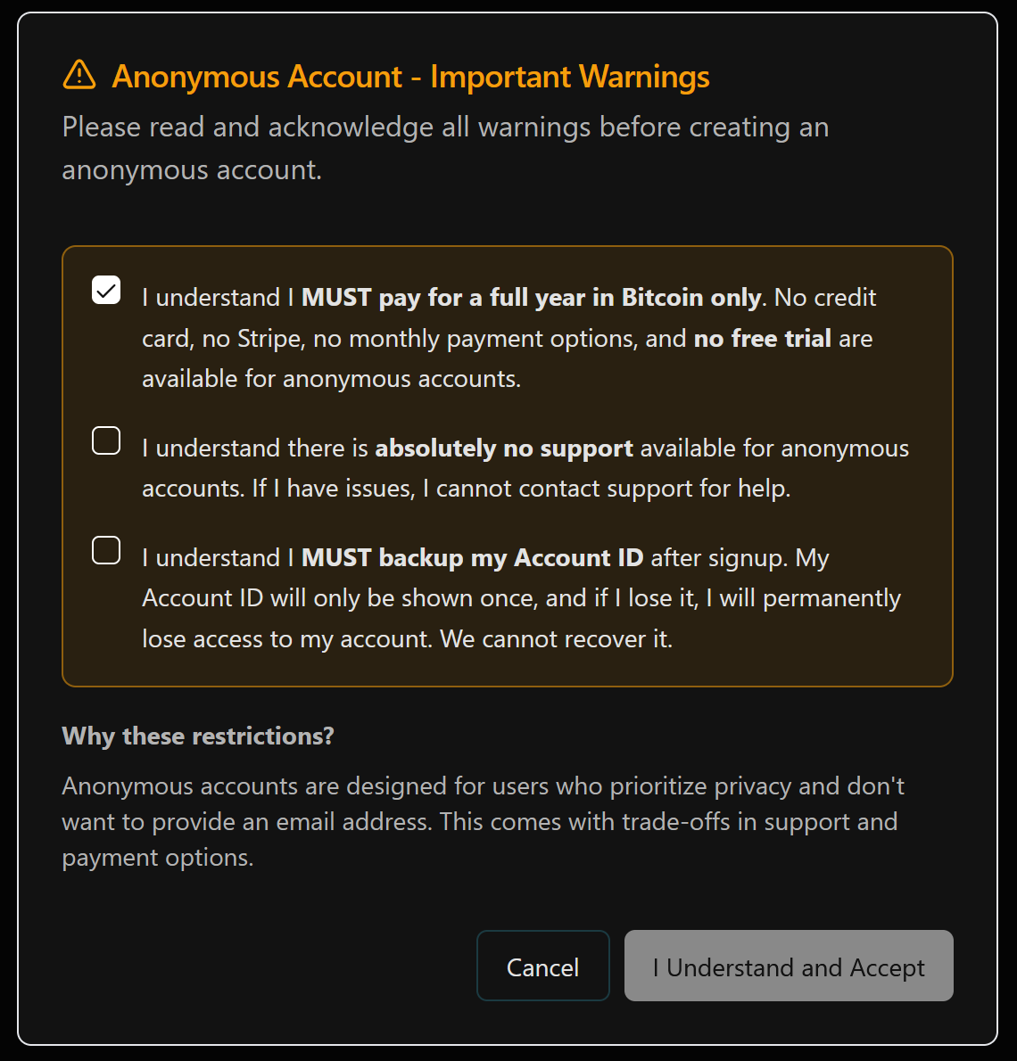 But tip of the hat to them for anyomous login and accepting bitcoin