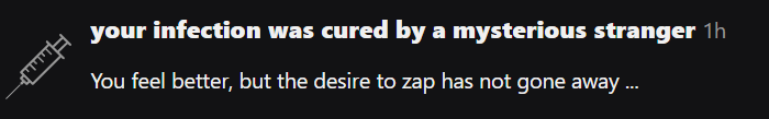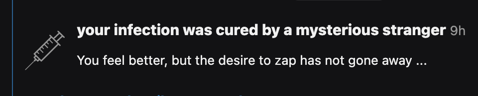 My zombie infection was cured by a mysterious stranger. Forever grateful to whoever had pity on me not having too much time these days. See you guys around probably next week.