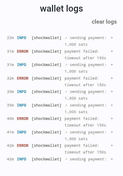 @justin_shocknet, I've been trying to pay you for the bounty, but it keeps failing. Perhaps @k00b may have an idea what's wrong. So, I'm instead sending via LN address. Please confirm receipt of 1k sats.