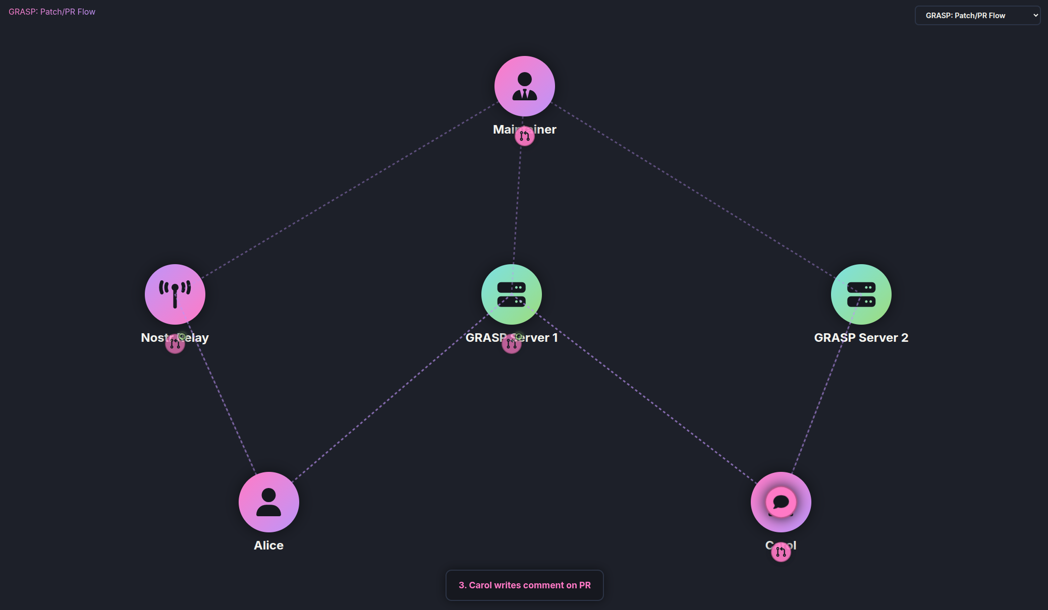 You pre-authorize pushes via signed Nostr events, then any compliant server can host your repo. Discover, push, and pull from multiple Grasp servers for resilience and censorship resistance.
