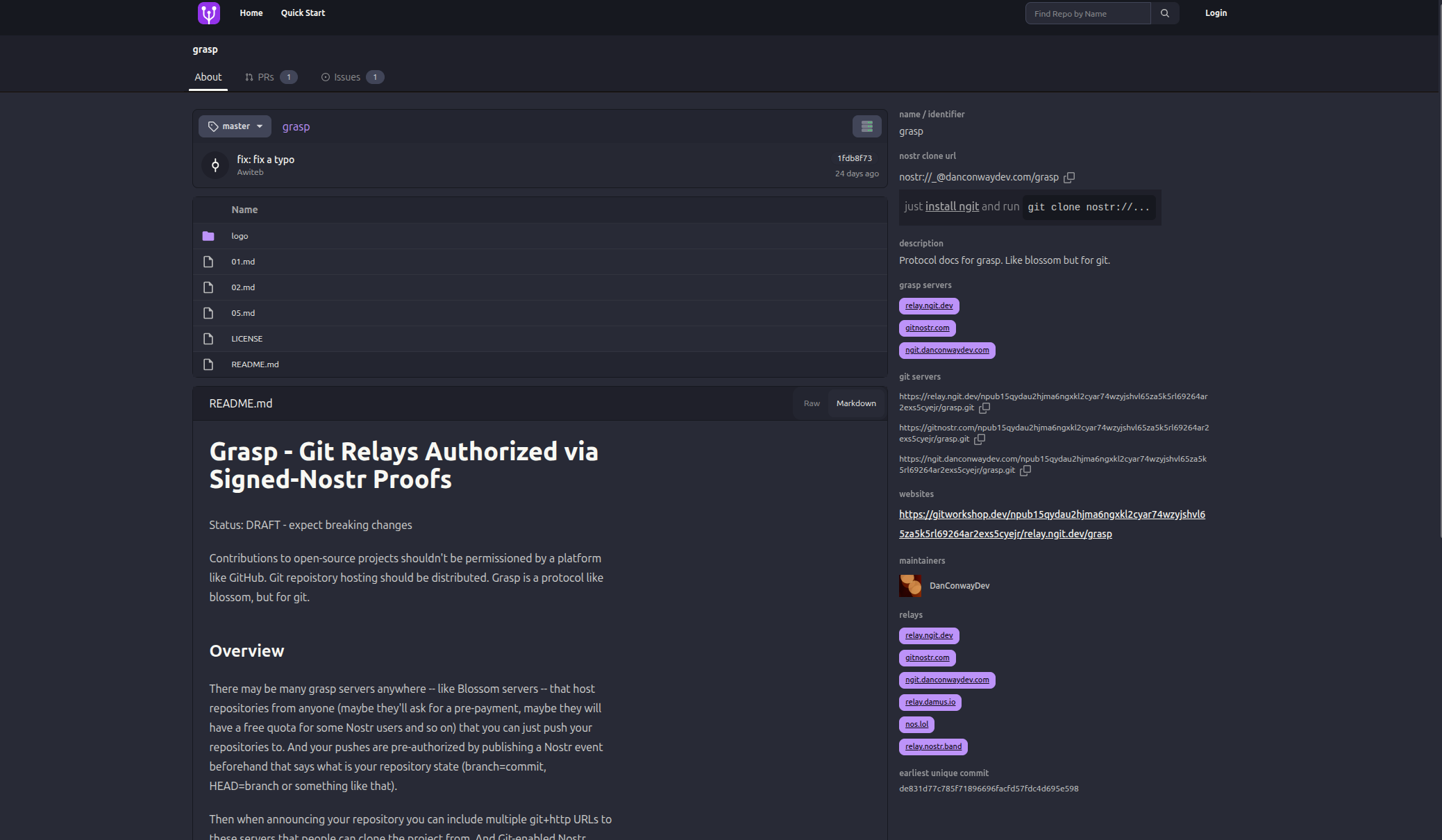 There is also a public instance of the implementation where it looks like the project is hosted: https://gitworkshop.dev/danconwaydev.com/grasp
