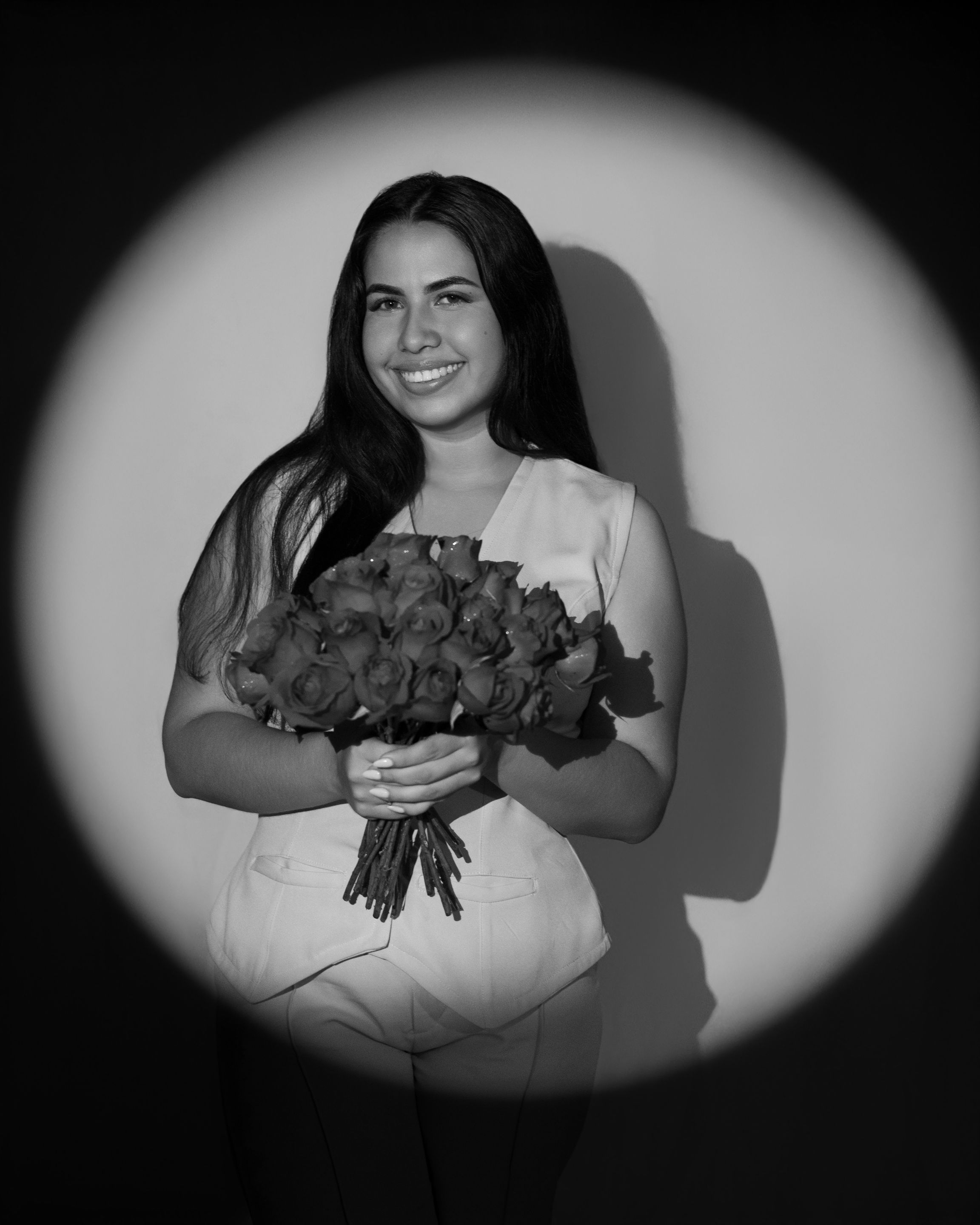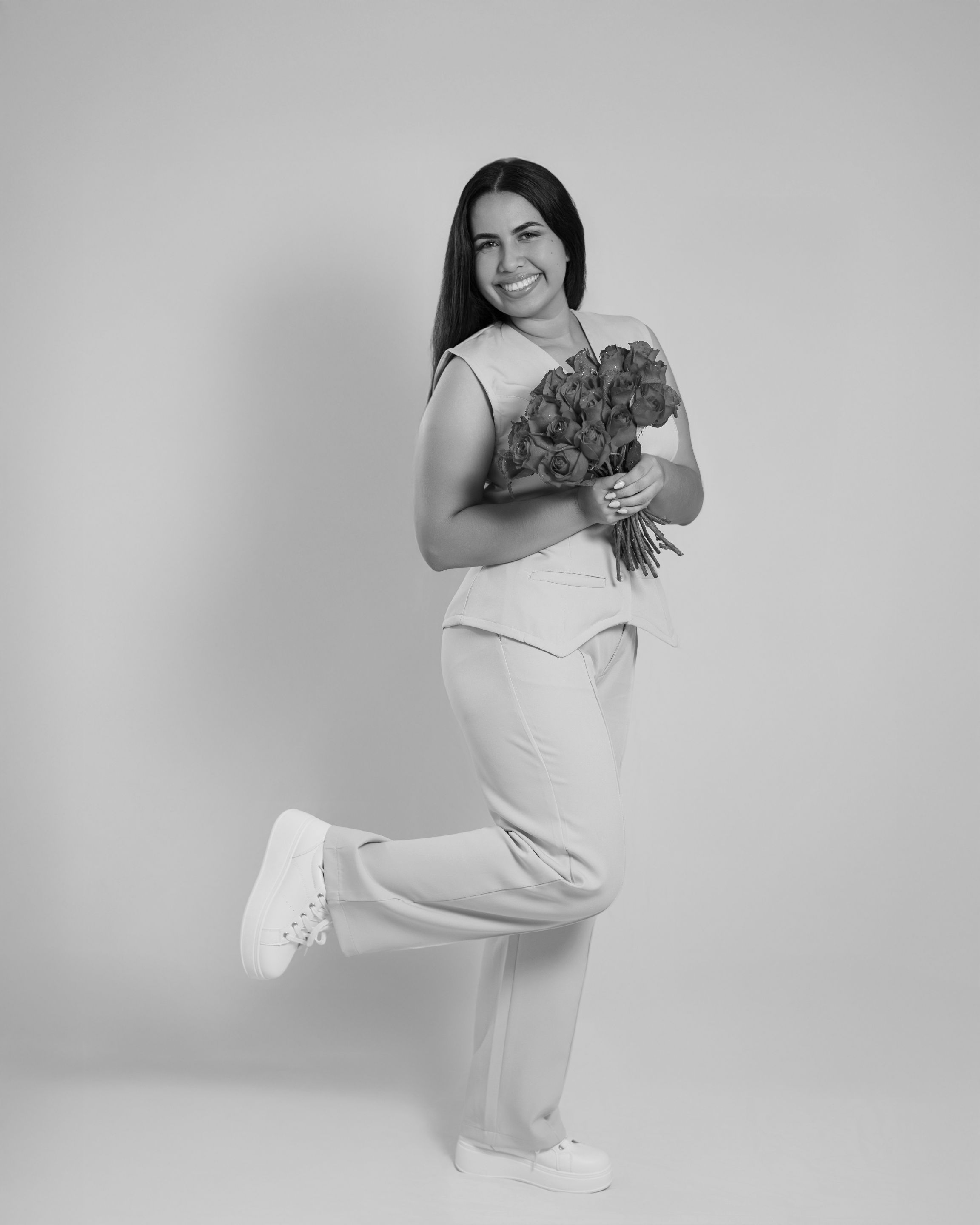 The girl also brought a bouquet of roses to the set to take some photographs with the roses: