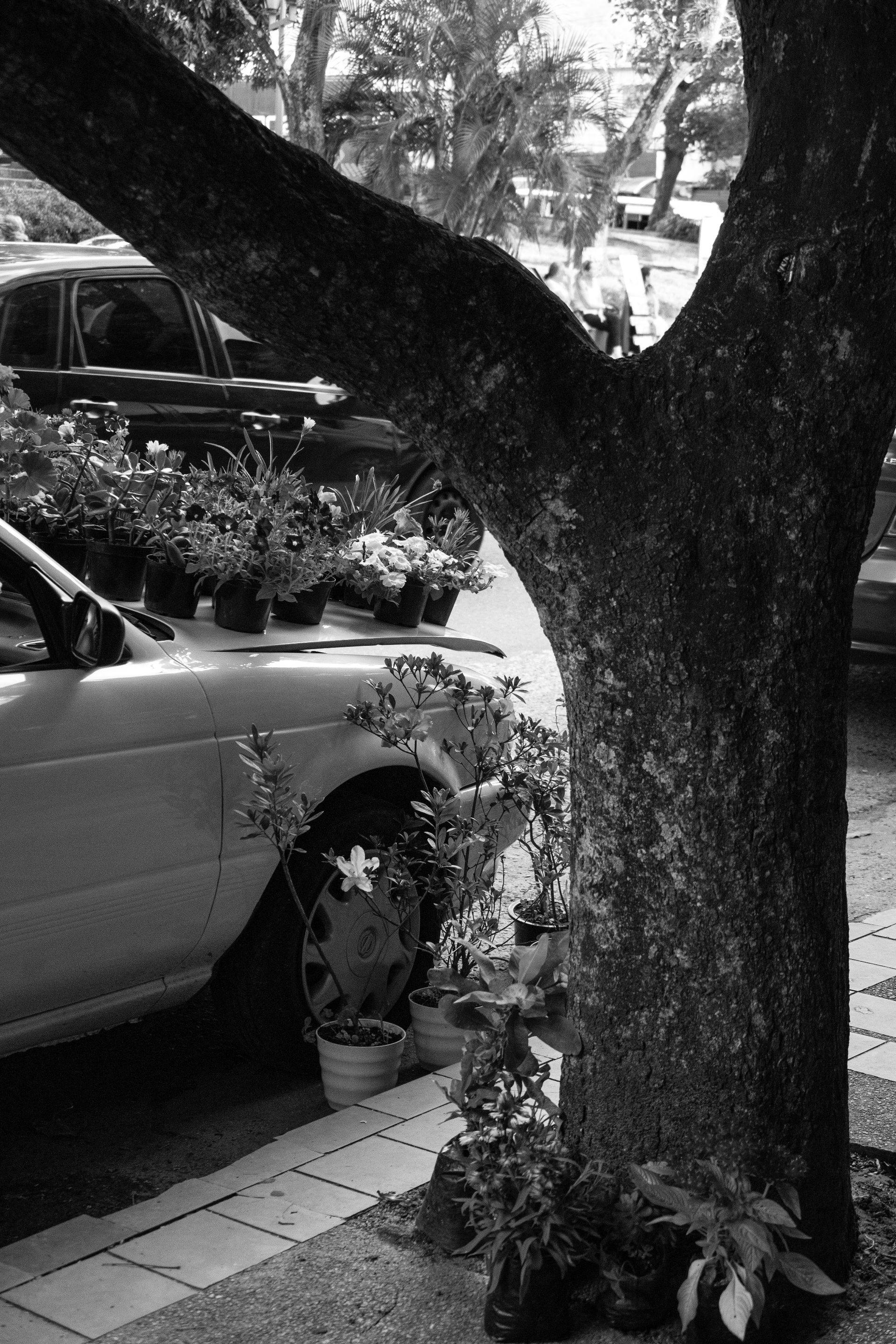 I was also able to see a very beautiful scene: it was a car covered with flower pots that were for sale: